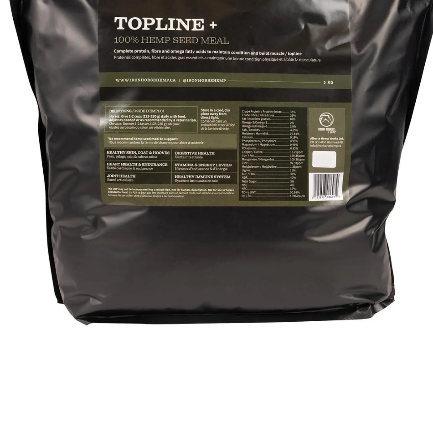 A source of antioxidants, essential fatty acids, vitamins, minerals, and all essential amino acids (for high-quality protein). Iron Horse’s Hemp seed meal contributes to optimal health and well-being. Recommended for horses to encourage healthy skin, coat, hair and hooves. As well as helping to support heart health, endurance, stamina and energy levels. All while maintaining joint health and a healthy immune system, making this supplement a great addition to most feed programs.