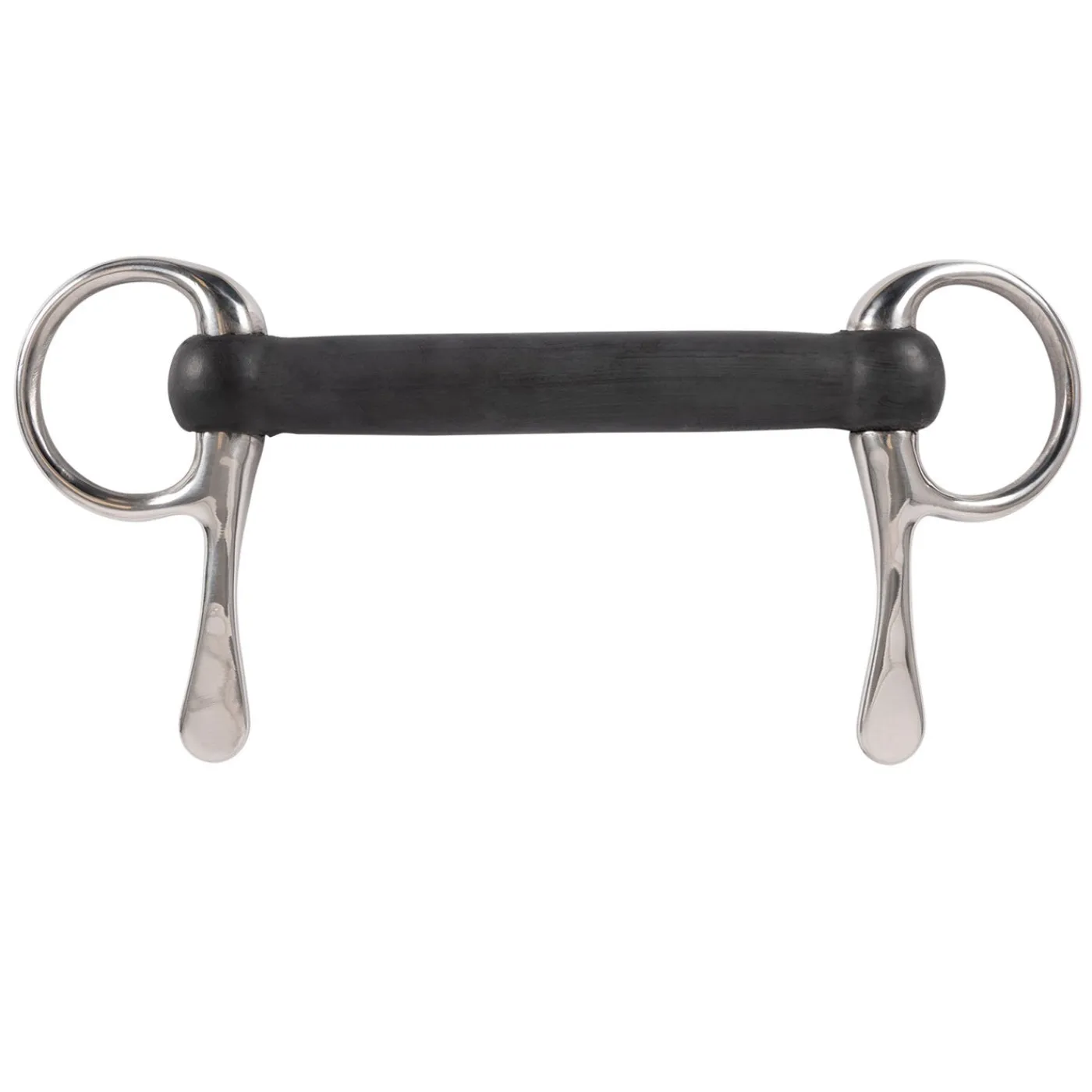 The Half Cheek Snaffle bit is a relative of the full cheek snaffle and helps to improve lateral action on a direct rein by putting pressure on the horse’s face when the rein is engaged. The Half Cheek Snaffle bit only has its lower arm and offers a spoon-shaped appearance. The half cheeks help to prevent the bit from sliding through the horse’s mouth and the arm extends towards the horse’s jaw to help keep it in place. Complete with a rubber straight mouthpiece that adds pressure on the tongue. The Half Cheek Snaffle Bit if often used on driving or racehorses.