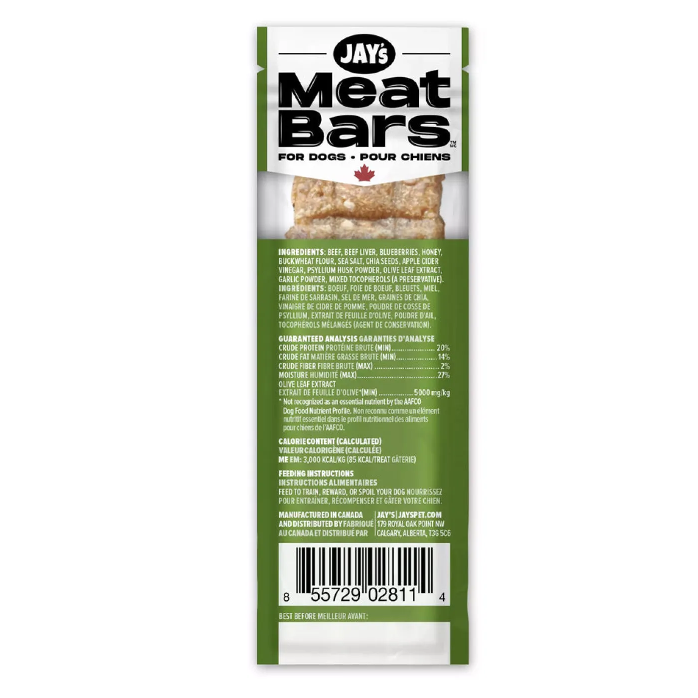 Jay’s Meat Bars offer the perfect treat for your dog while on the go. Loaded with grass-fed beef combined with fresh blueberries for a soft and tasty reward.