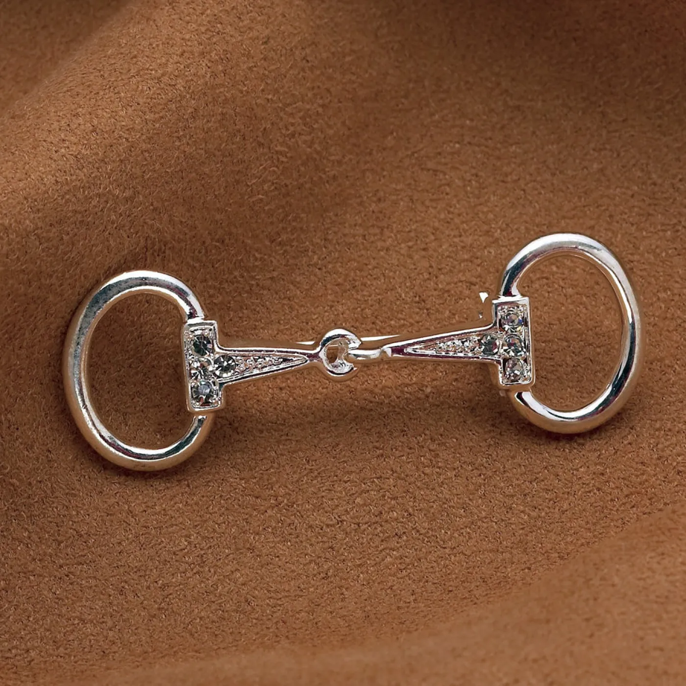 Add a little personality to your traditional show attire with the Small Rhinestone Snaffle Bit Stock Pin. This stylish pin is the perfect addition to your stock tie or to your outfit away from the horse show. Shaped like a snaffle bit and featuring rhinestones for an extra pop of sparkle. Perfect for any equestrian looking to have a little fun with their style and show off their passion!