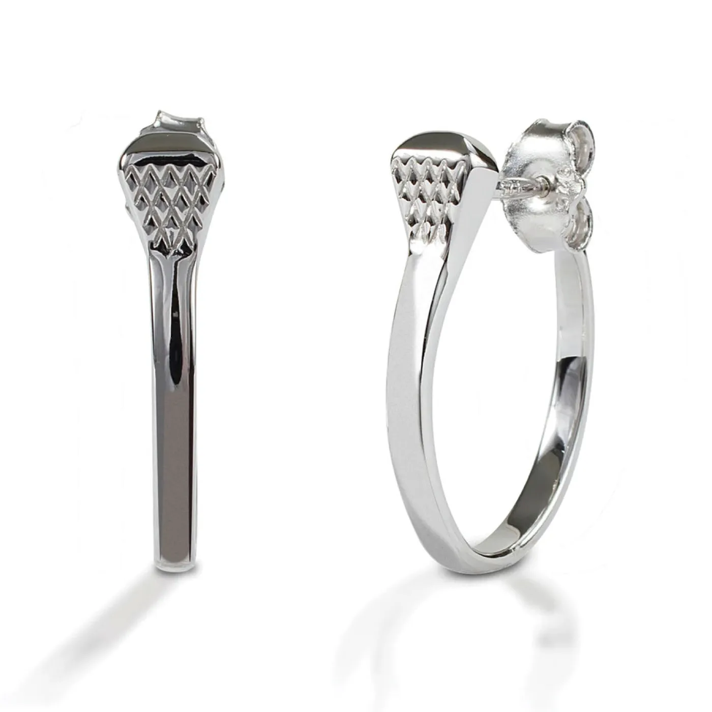 Designed with equestrians in mind! The Kelly Herd Post Back Nail Hoop Earrings are made in 0.925 sterling silver and feature horseshoe nails that are turned into a smooth hoop shape.