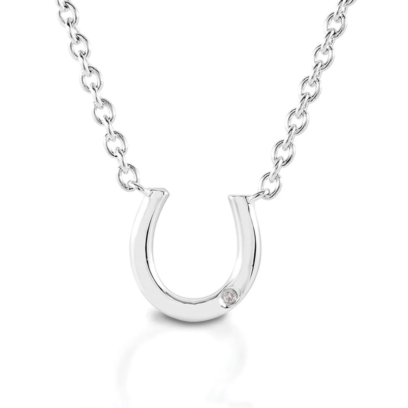 Designed with equestrians in mind! The Kelly Herd Single Stone Horseshoe Necklace features a stylized sterling silver horseshoe with a small set of cubic zirconia stones. Complete with an adjustable 16-18″ chain.