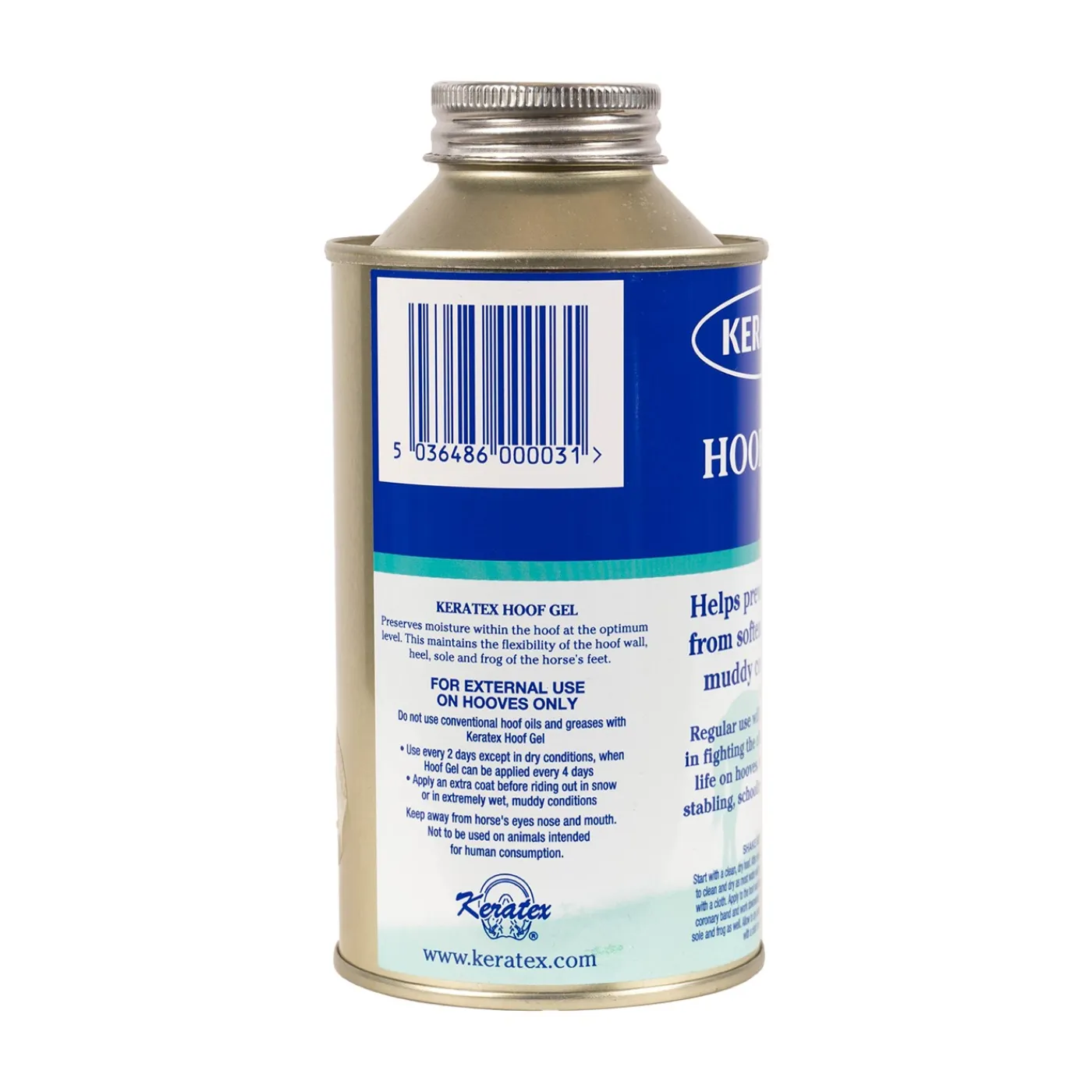 Designed for wet weather use, Keratex Hoof Gel forms a waterproof and breathable layer over the hoof, keeping hooves water-tight and helping to stop them from softening, splitting or breaking up in wet, muddy conditions. Apply Keratex Hoof Gel all over the hoof, frog, sole and heel every other day to help restore the quality and strength in your horse’s hooves. Once the product has absorbed into the hooves you will see that water forms droplets that simply roll off the hooves like rain off a waxed jacket or water off a duck’s back.