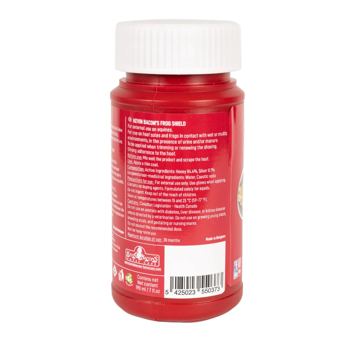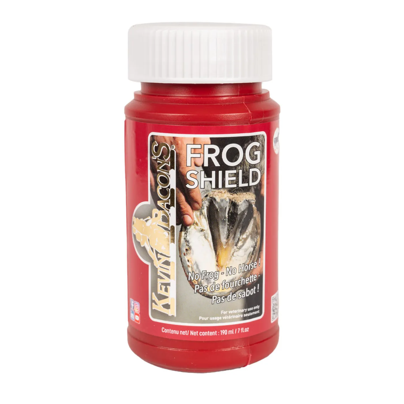 Kevin Bacon’s Frog Shield is recommended for frogs and soles that are softened, sensitive, smelly, and/or too thin. Applying Frog Shield to the sole and frog of the hoof during a shoeing renewal and before any silicone application can help maintain the health of the sole, white line and frog. Features an integrated applicator brush and adheres perfectly to the sole and frog of the hoof.