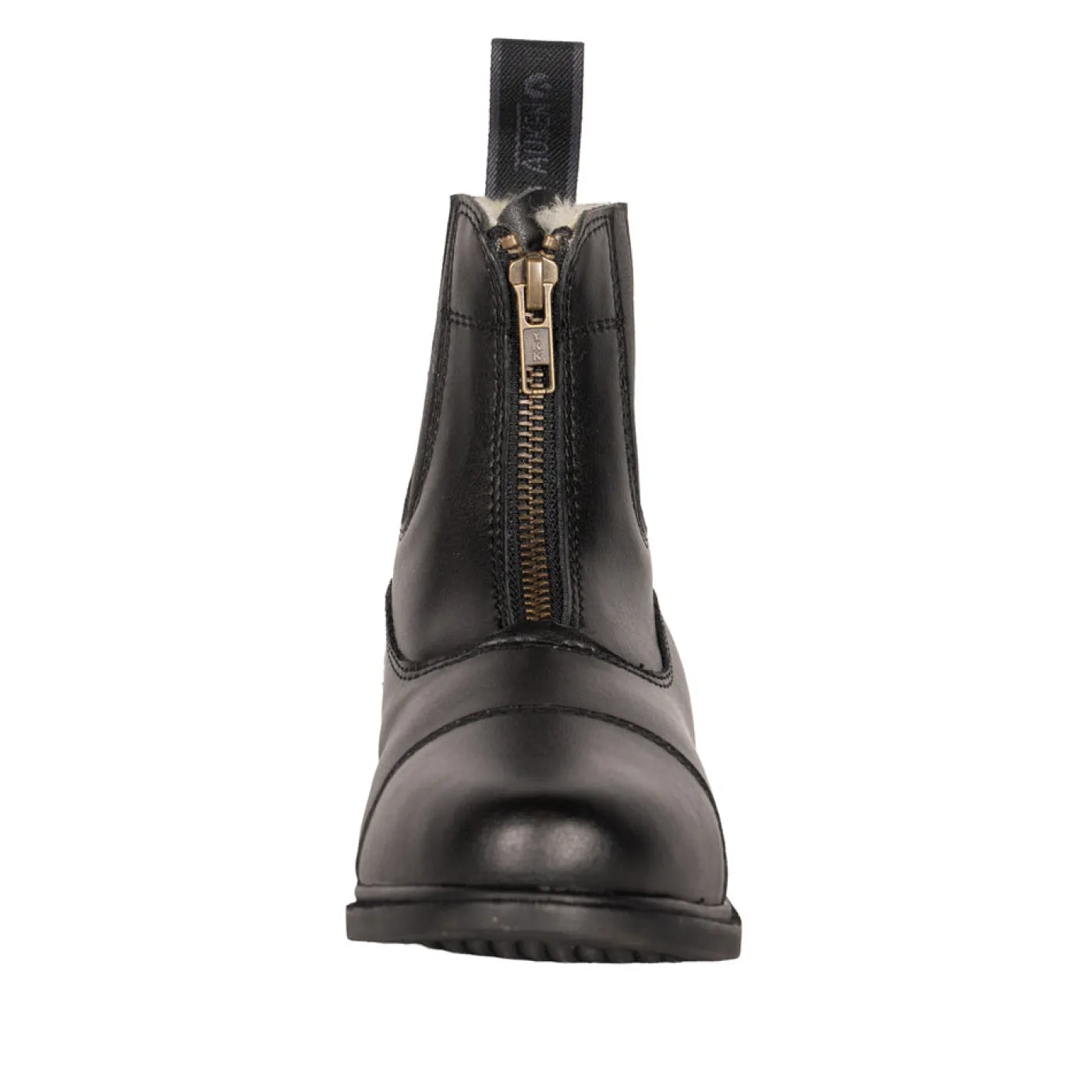 Help to keep kids feet warm all winter long, in or out of the saddle. Constructed from synthetic leather with a waterproof outer, allowing for wear in or out of the barn. Features a zip front for easy on and off with the addition of an elastic pull tab. Complete with a faux fur lining for added comfort and warmth, and a round toe.