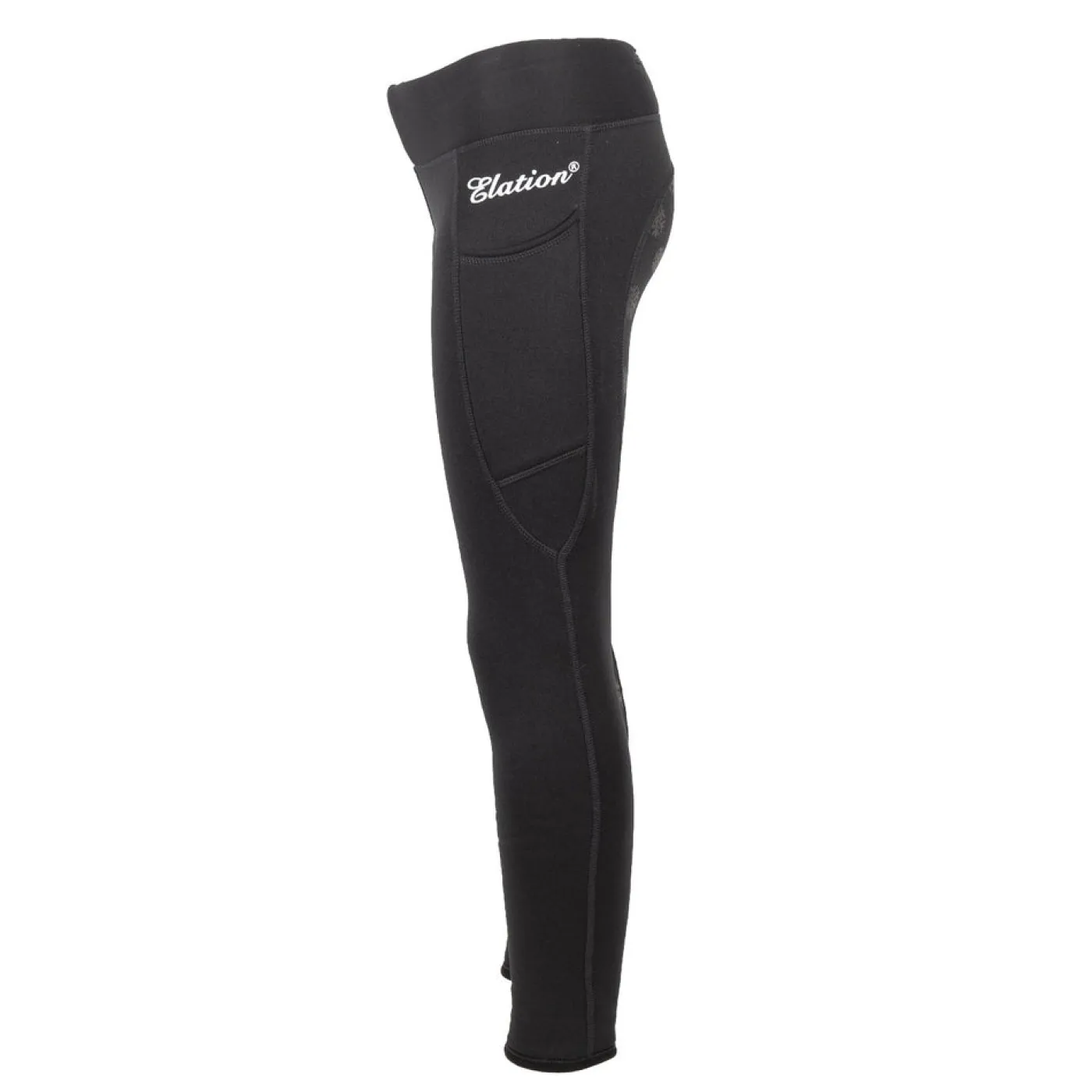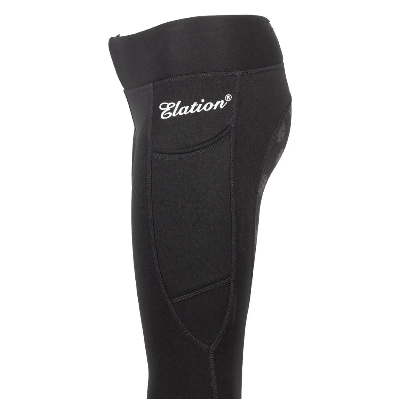 The Elation Red Label Flurry Tight offers the same great style created for ladies, now offered in kids! The Flurry offers a pull-on, fleece lined tight designed to keep kids warm with a soft to the touch feel. Features a wide waistband, zippered back pockets, and elasticized bottoms to help keep the tights from riding up under boots. Complete with thigh pockets and a silicone full seat created with a snowflake pattern for added grip in the saddle.