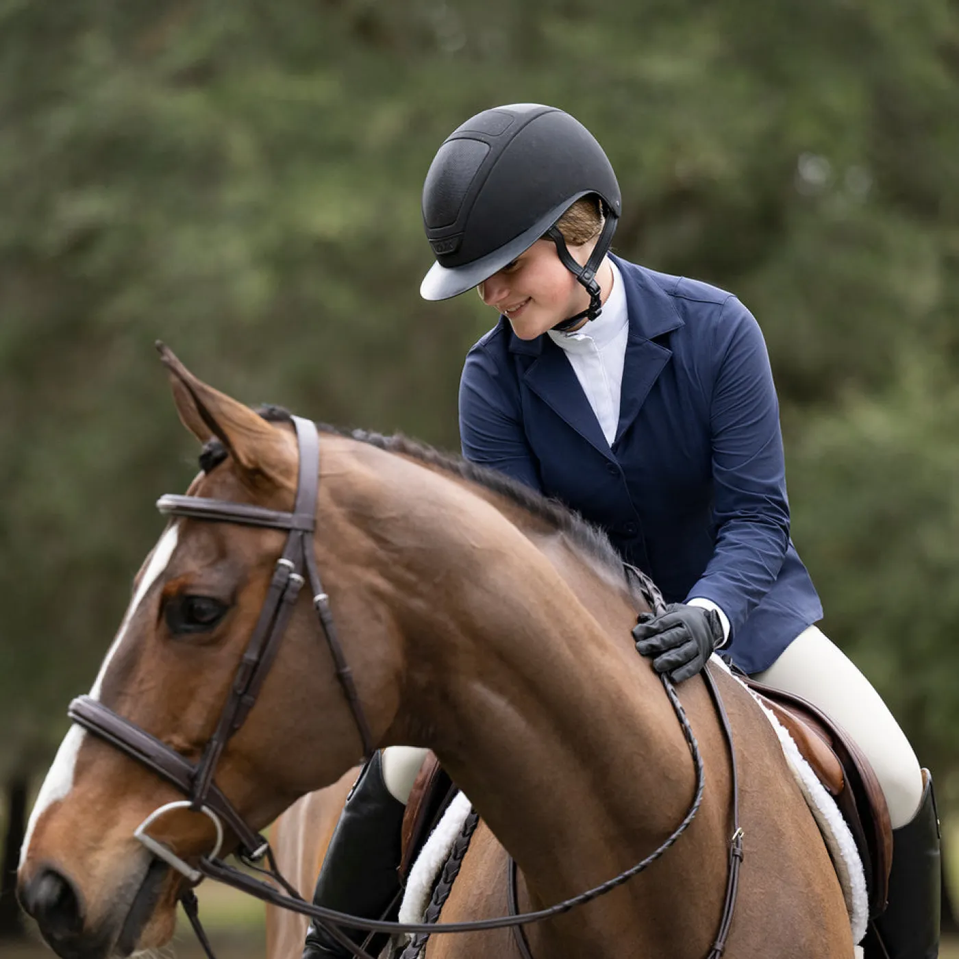 Classic styling ideal for young riders, this lightweight, breathable kids show coat stretches for unrestricted riding—and growing. Pony and dog slobbers? No worries! The Dynamic™ Extreme fabric sheds horse grime and everything else that comes with showing. Toss it in the washing machine and kids are ready for the next competition.