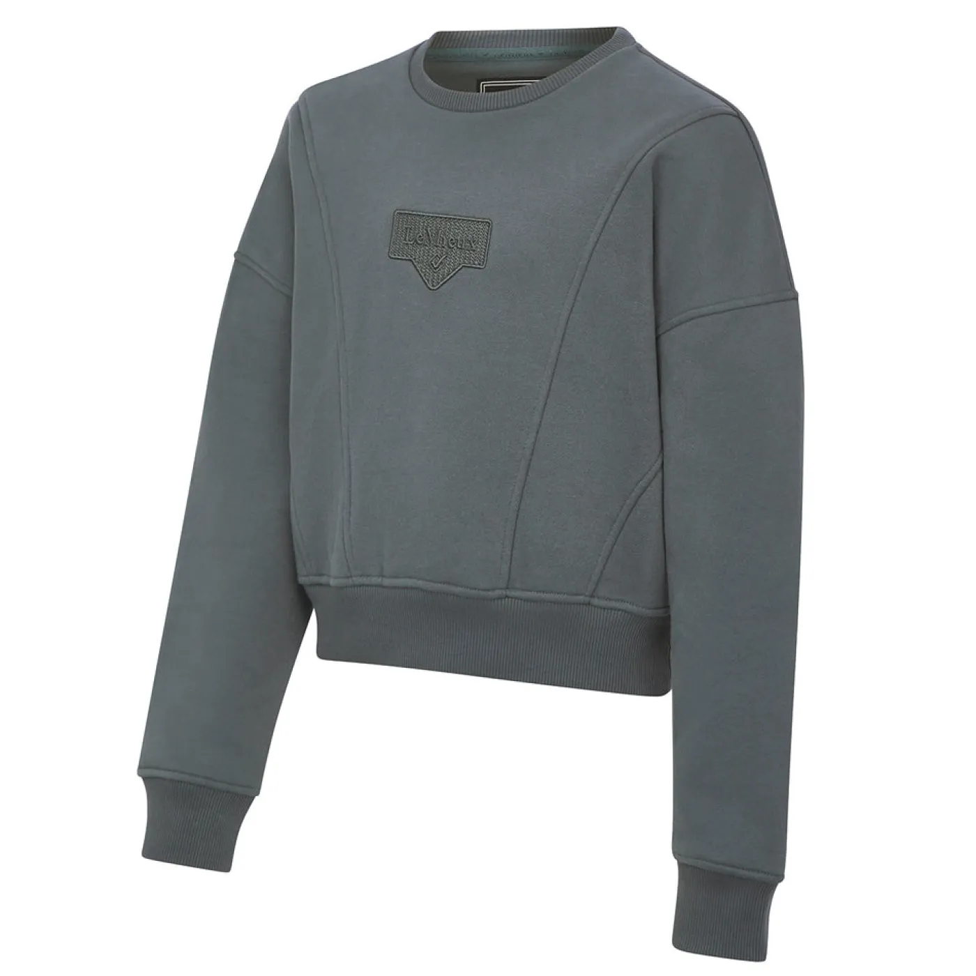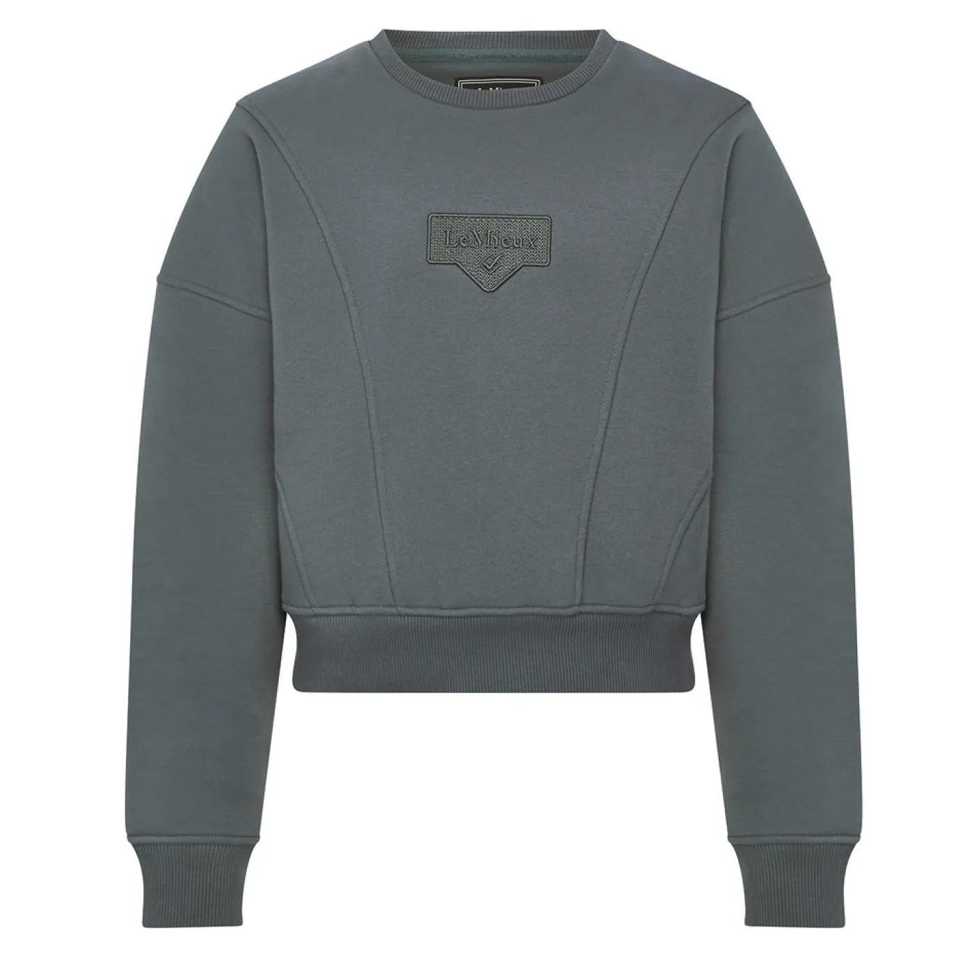 Style it up in this crew-necked sweatshirt in super soft carbon sueded fabric. The brushed back is super cozy and warm. The slightly shorter length and sporty, flattering style lines give this sweatshirt a trendy design. It features a LeMieux saddle pad badge embroidered on the centre front – perfect for creating a subtle matchy look.