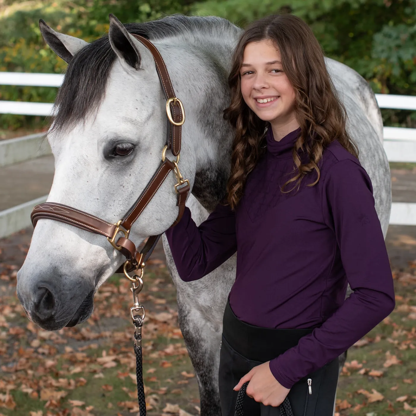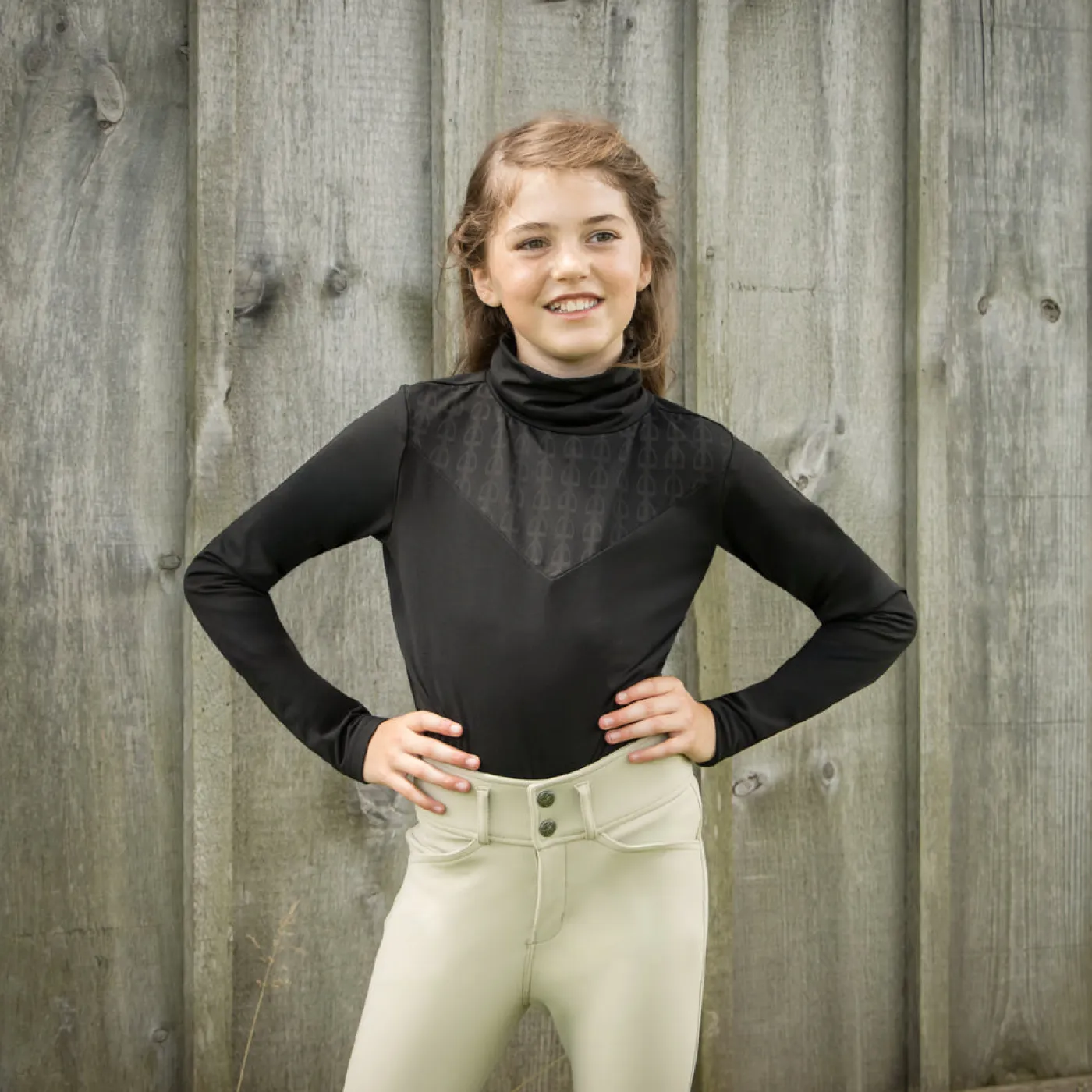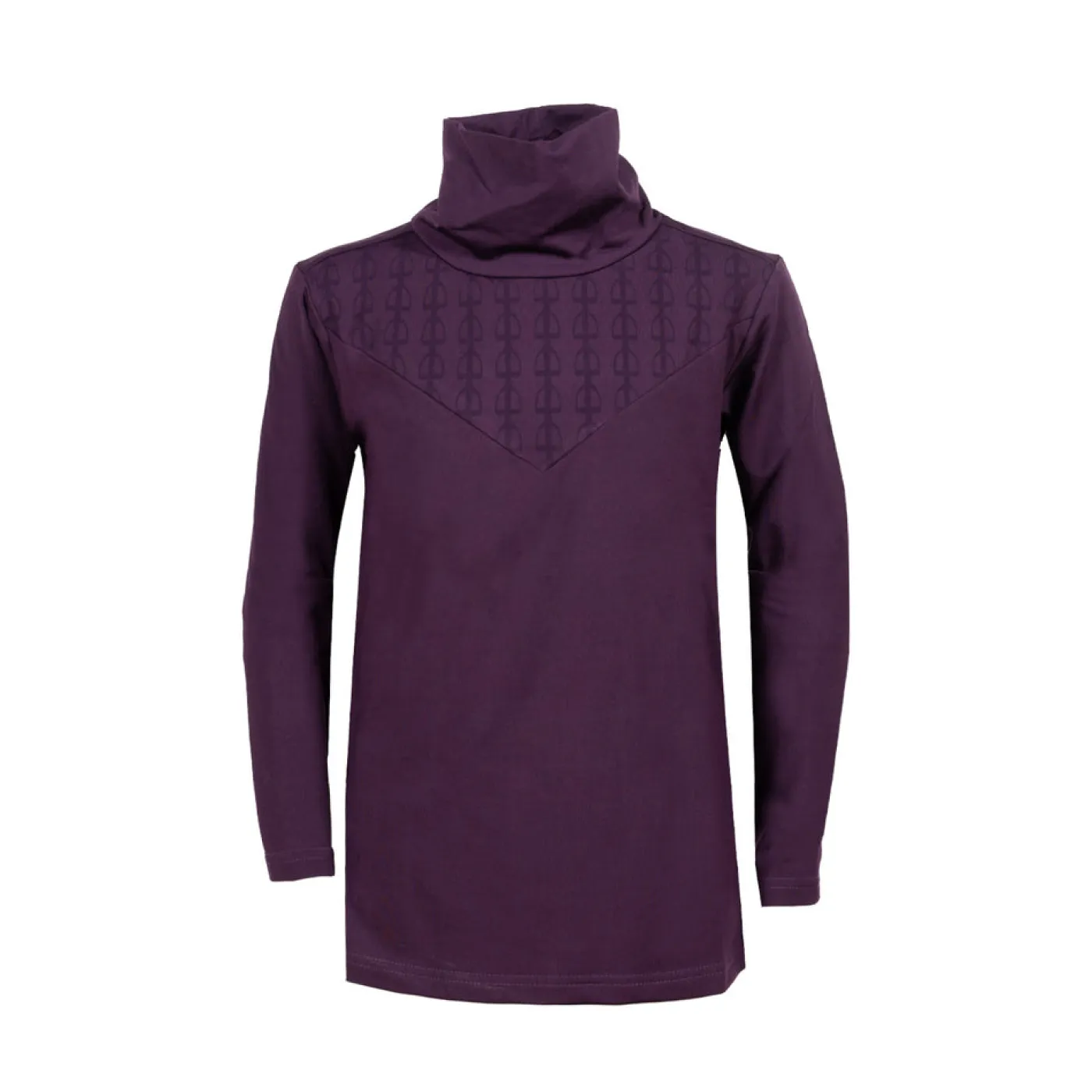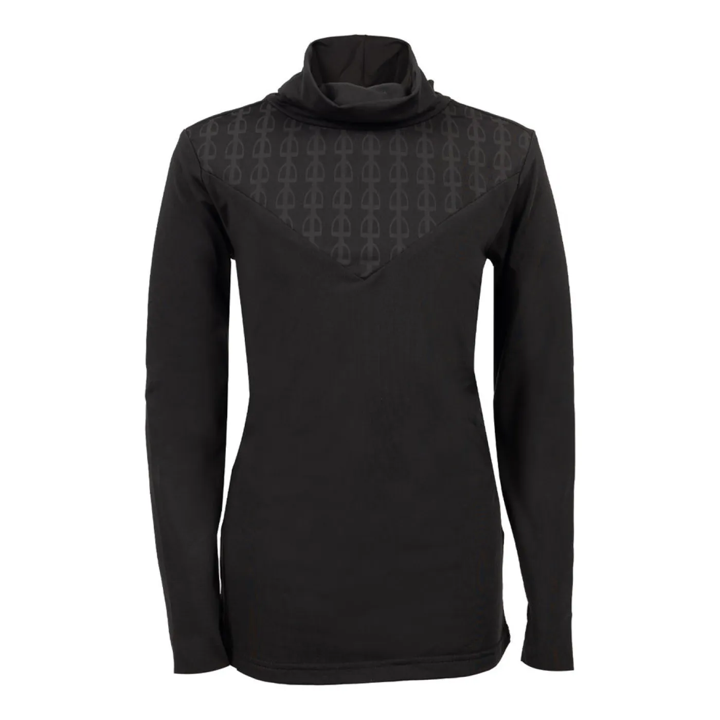 The TemTeq Equestrian Juniper Turtleneck Top is the perfect layering piece as the weather gets colder. Made from moisture-wicking fabric to help keep you dry and warm. Features a fleece backed lining with a subtle tone-on-tone equestrian motif print at the neck.