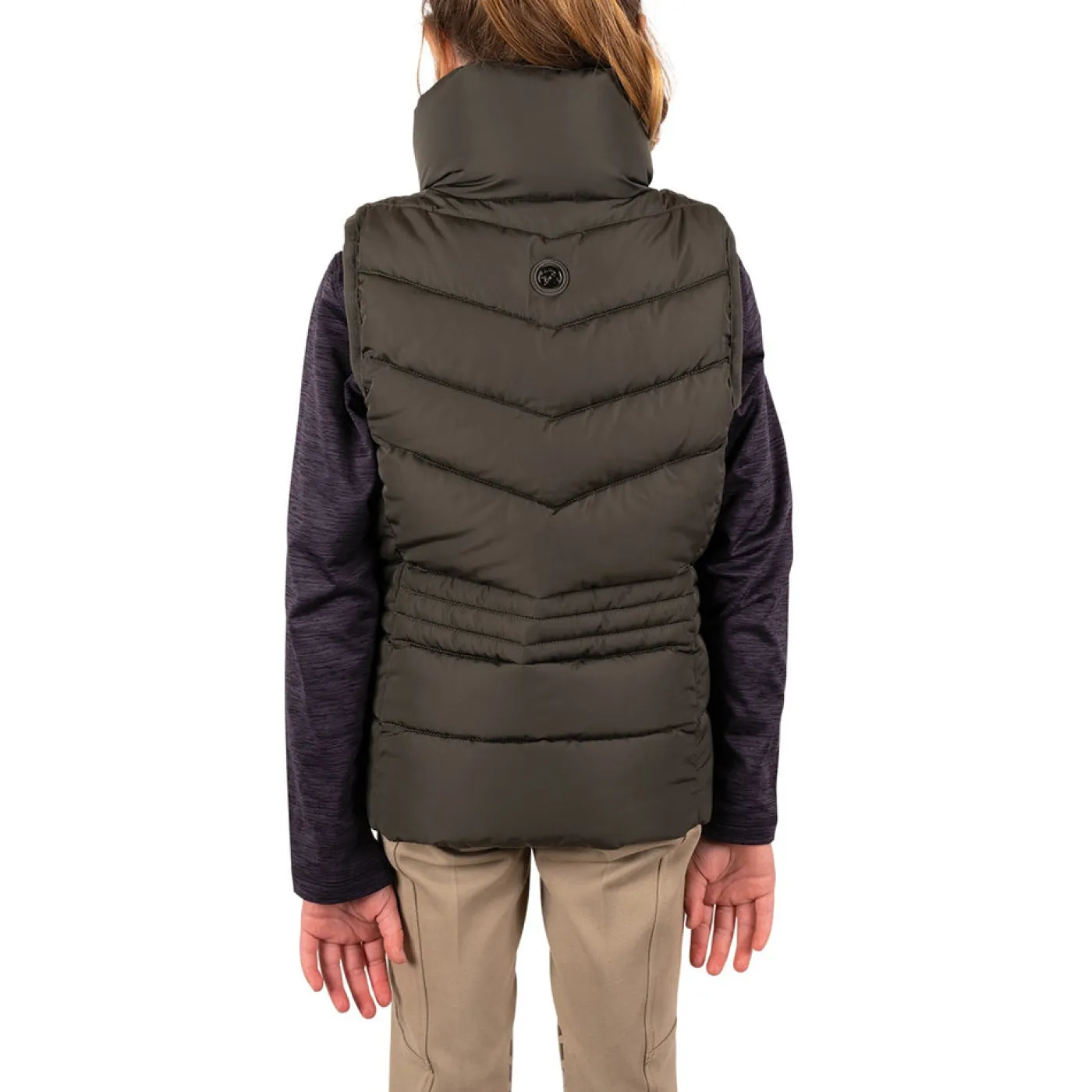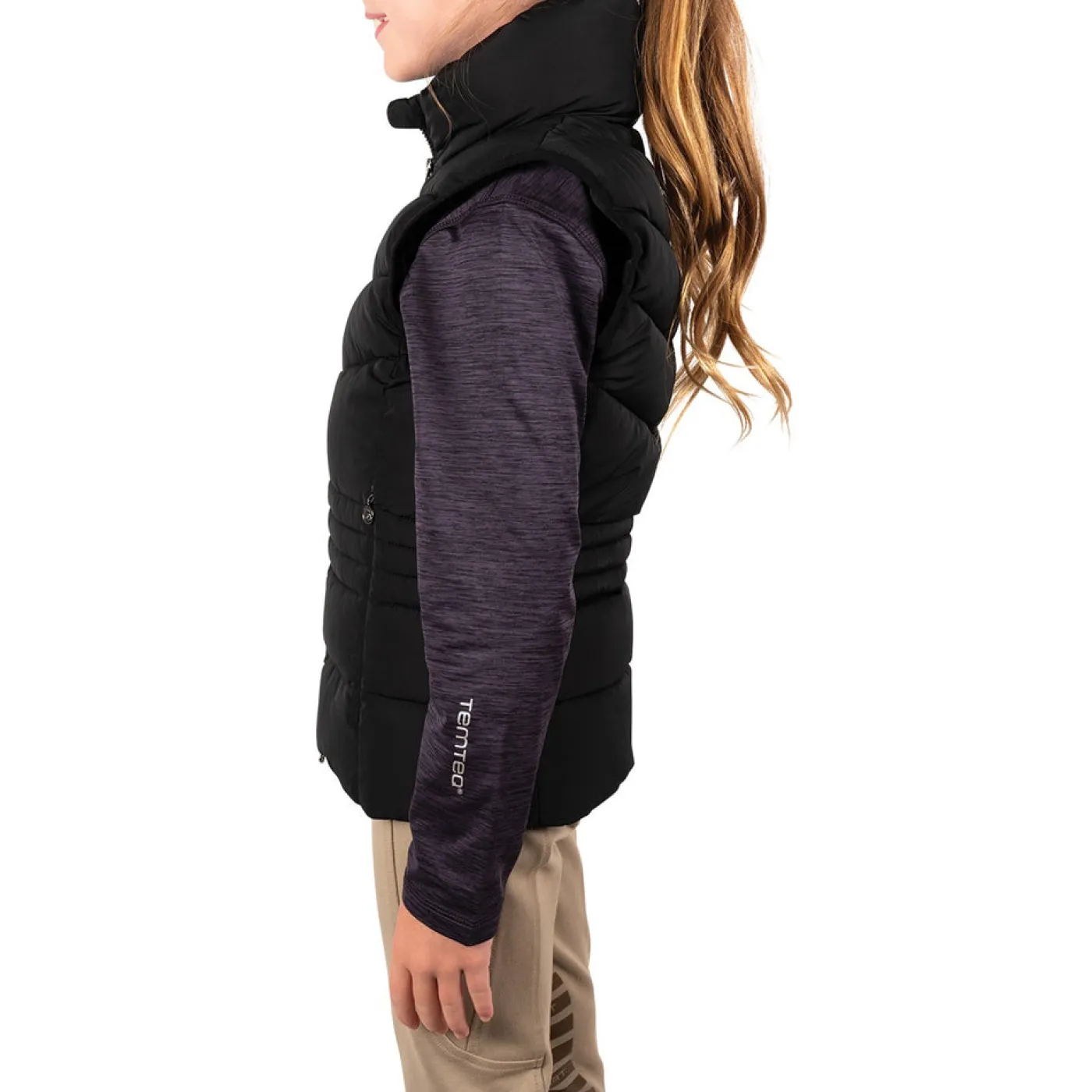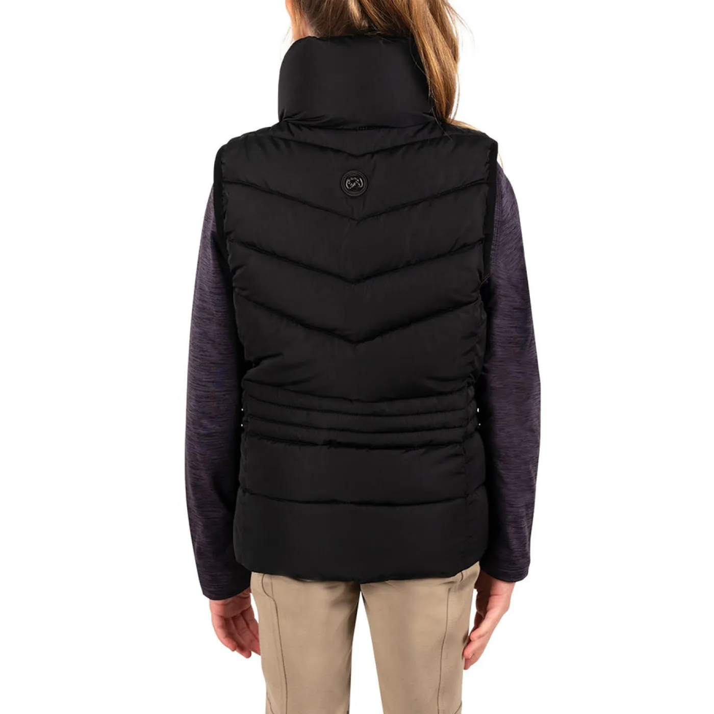 Exclusive to Greenhawk! The TemTeq Equestrian Mica Vest offers a fancy quilted vest with shaped seams to provide a form fitting appearance. Features a high collar for added coverage, welt pockets with concealed zippers, and a 2-way front zipper. Complete with embroidery at the check and a rubber badge on the back.