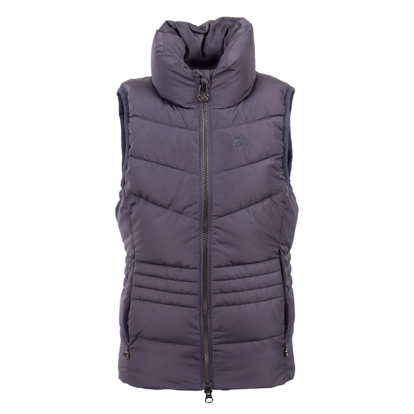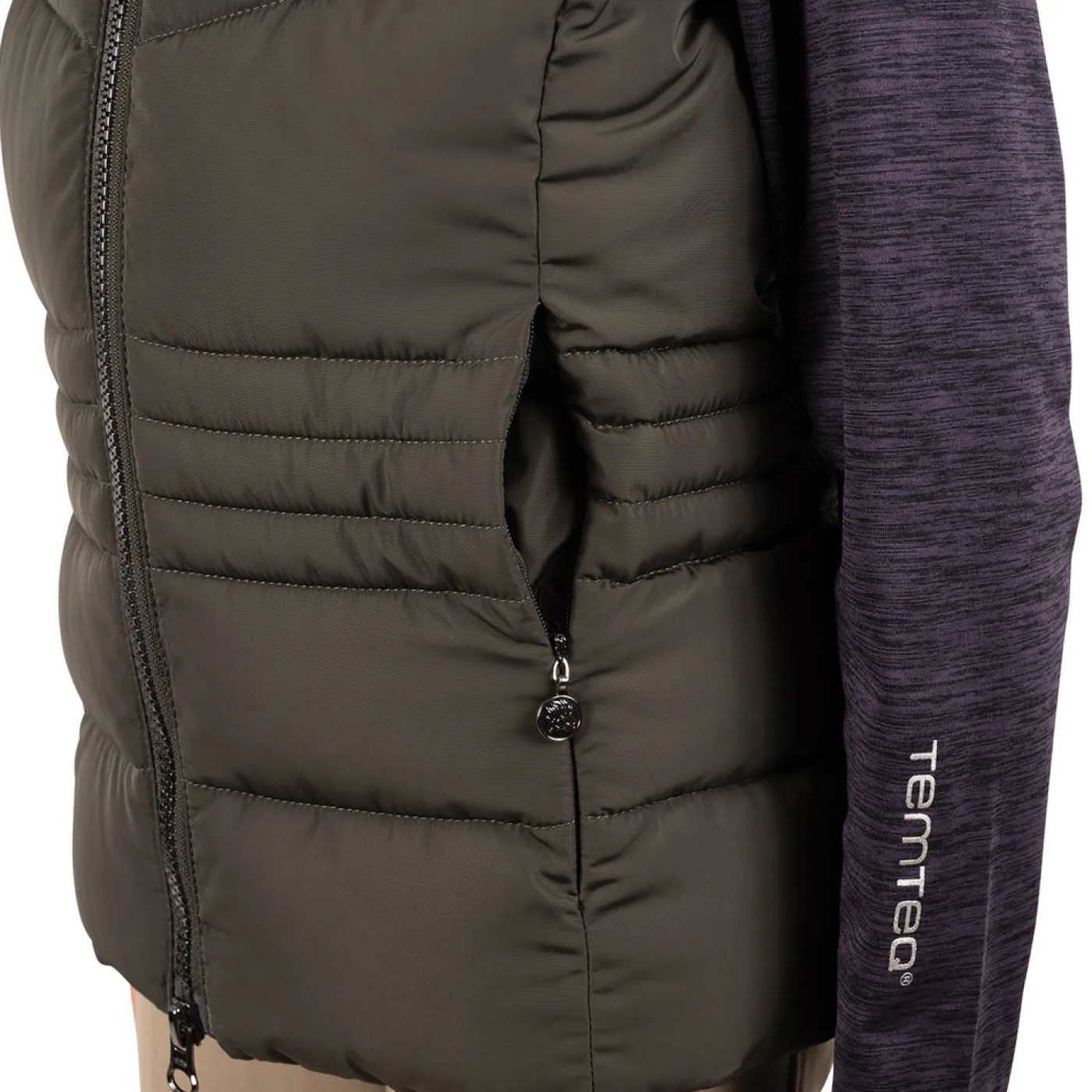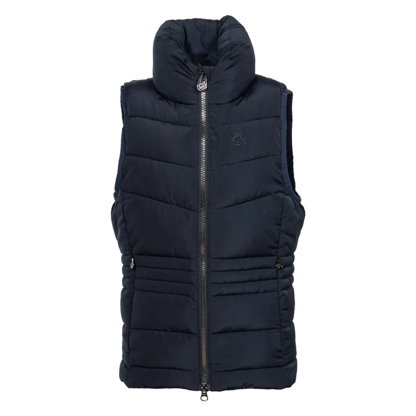 Exclusive to Greenhawk! The TemTeq Equestrian Mica Vest offers a fancy quilted vest with shaped seams to provide a form fitting appearance. Features a high collar for added coverage, welt pockets with concealed zippers, and a 2-way front zipper. Complete with embroidery at the check and a rubber badge on the back.