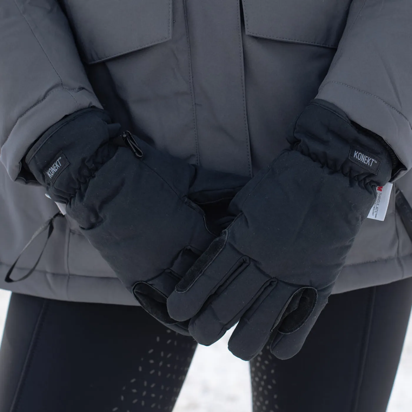 The Konekt Fleece Lined Winter Gripper Gloves are perfect for winter schooling! Feature a fleece lined cotton knit construction for added warmth and grippy palms to help you hold the reins. Complete with a Velcro wrist tab for easy adjustment.
