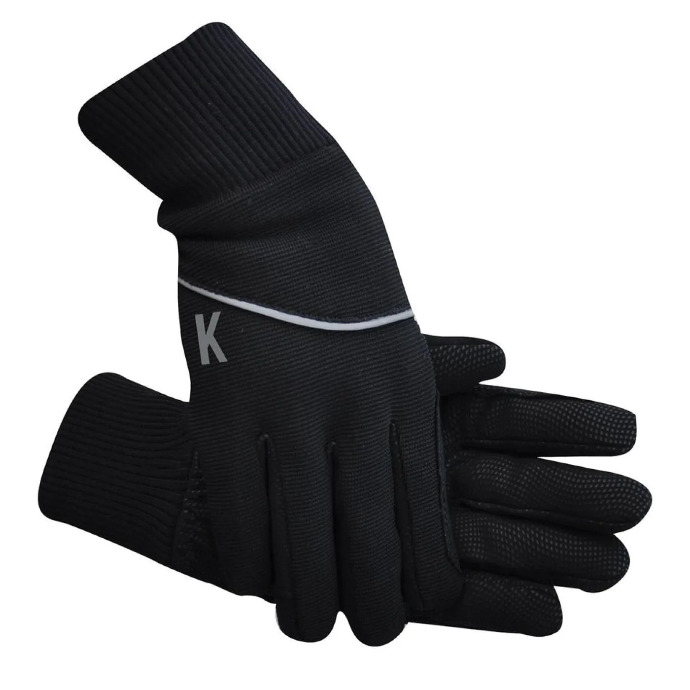 Winter riding glove featuring a comfortable, pliable palm with a dotted silicone pattern for grip. Extra padding on the index finger and thumb enhance durability and the snug cuff helps retain body heat. Complete with reflective detailing.