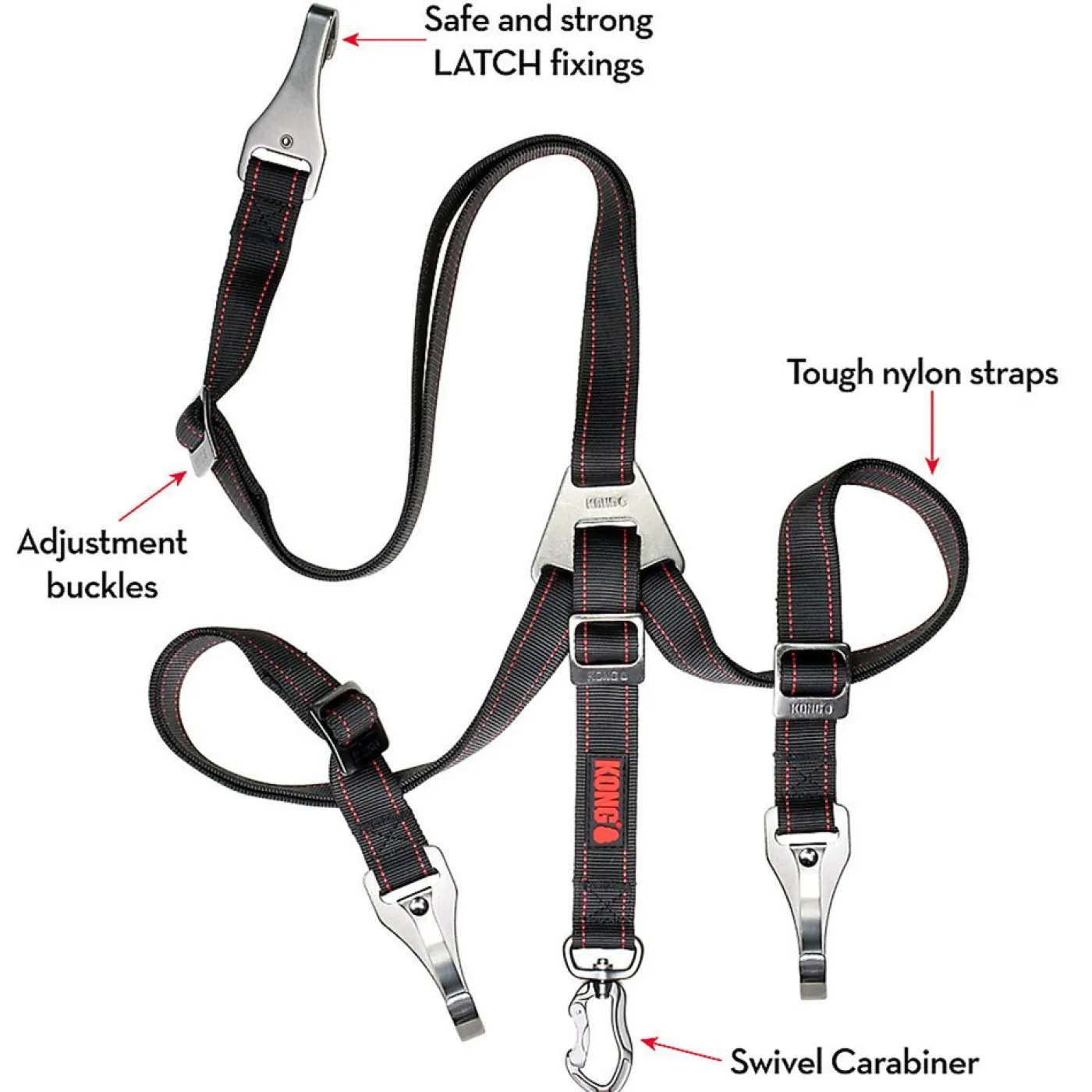 The KONG Travel Ultimate Safety Tether helps to secure your dog while in the car. Fully adjustable to accommodate different sized dogs and uses the LATCH/ISOFIX/CanFix 3 point anchor system, which is designed for securing infant seats. Helps to keep your pup in a seat central position to minimize side to side movement.