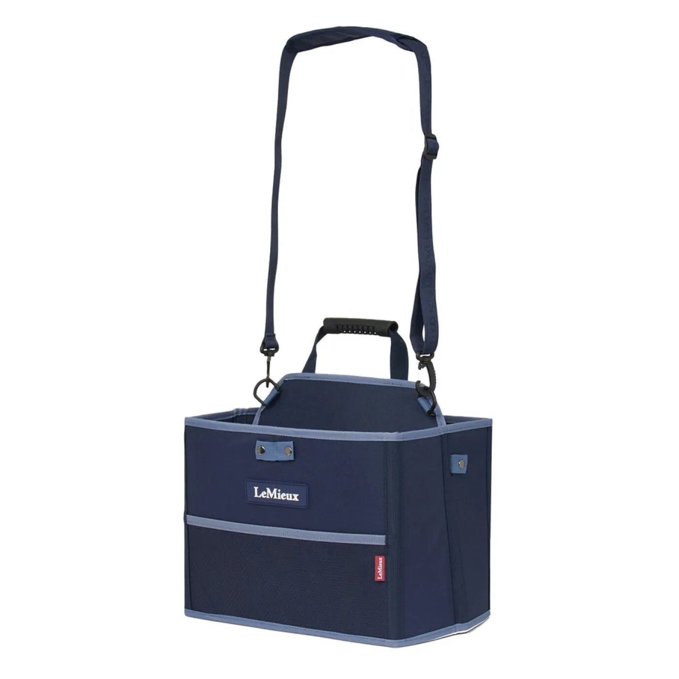 Ideal for travel or overflow storage, this pack-away storage tote provides additional space when needed. Easy to assemble, it pops together with strong press studs to create a large carry tote. Multiple sections and pockets will store all your equipment and grooming accessories, plus a grab handle and removable shoulder strap offer comfortable carrying options. The sturdy mesh base allows dust and dirt to escape and air to circulate, keeping things neat and clean. When you’re done, it packs flat for storage!