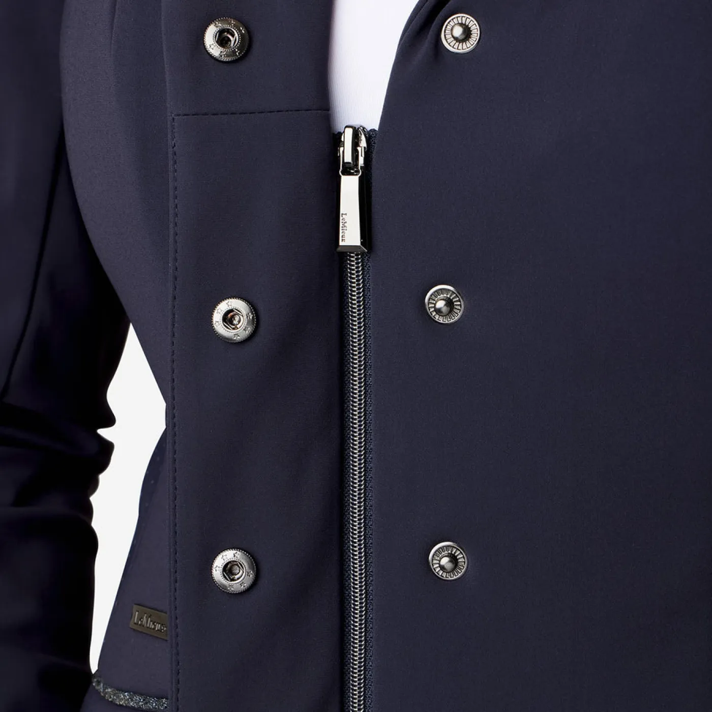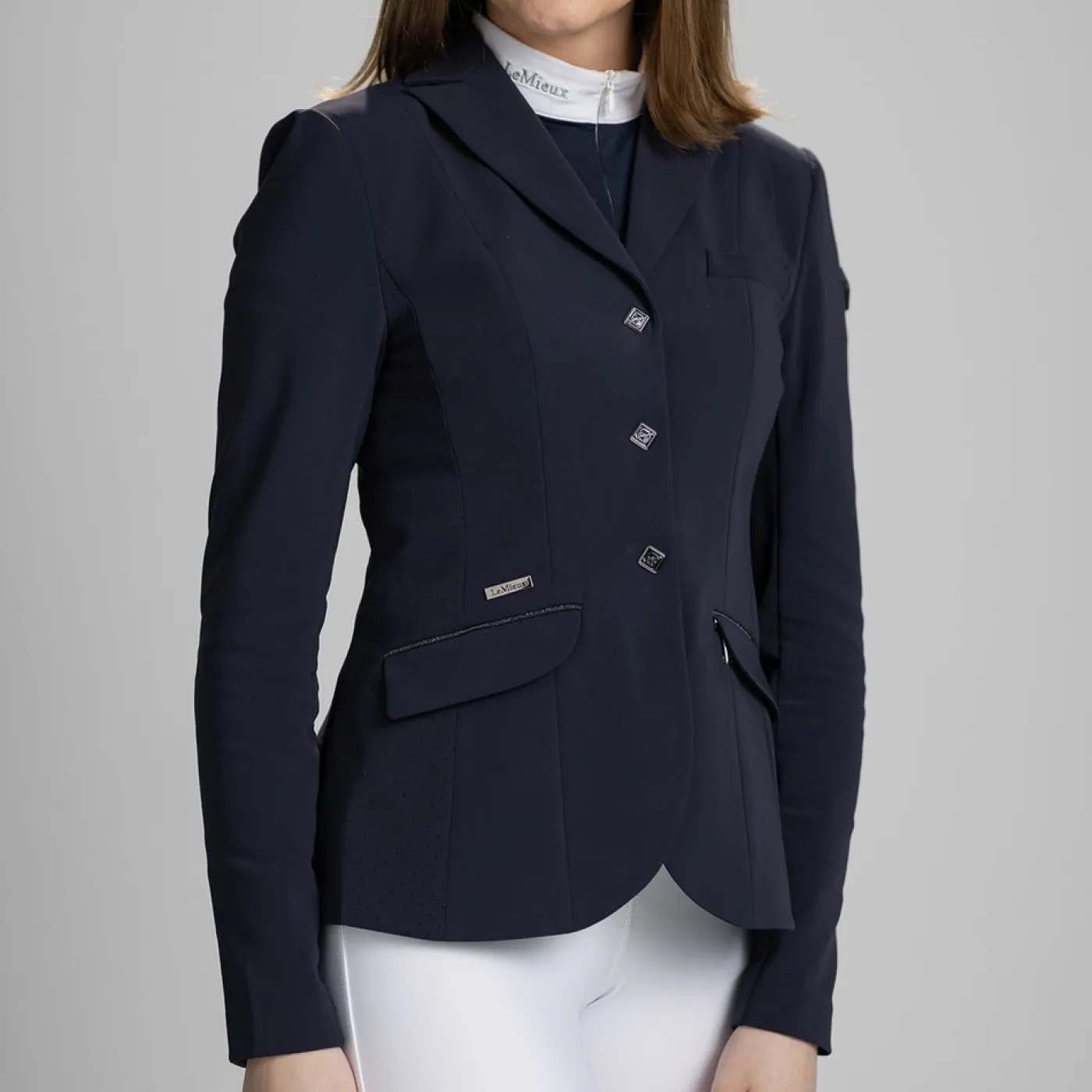 The stunning new Dynamique Show Jacket has been designed with your competition performance in mind. Vented side panels and sports mesh lining to the front provide the ultimate breathability, combined with superior stretch and recovery so that the rider is unrestricted and free to move. A subtle beaded trims on pocket edges and back belt panel add a touch of luxury sparkle and creates a flattering silhouette and stylish appearance. Fastened with a front zip and custom LeMieux press stud for stunning practicality, this Show Jacket is a must-have for all competition riders.