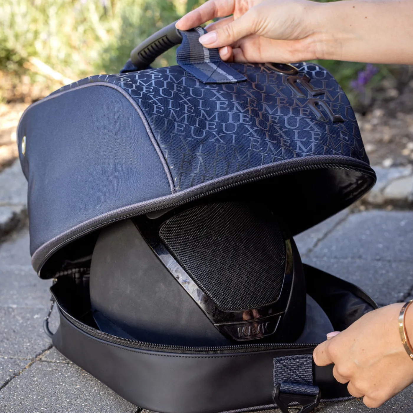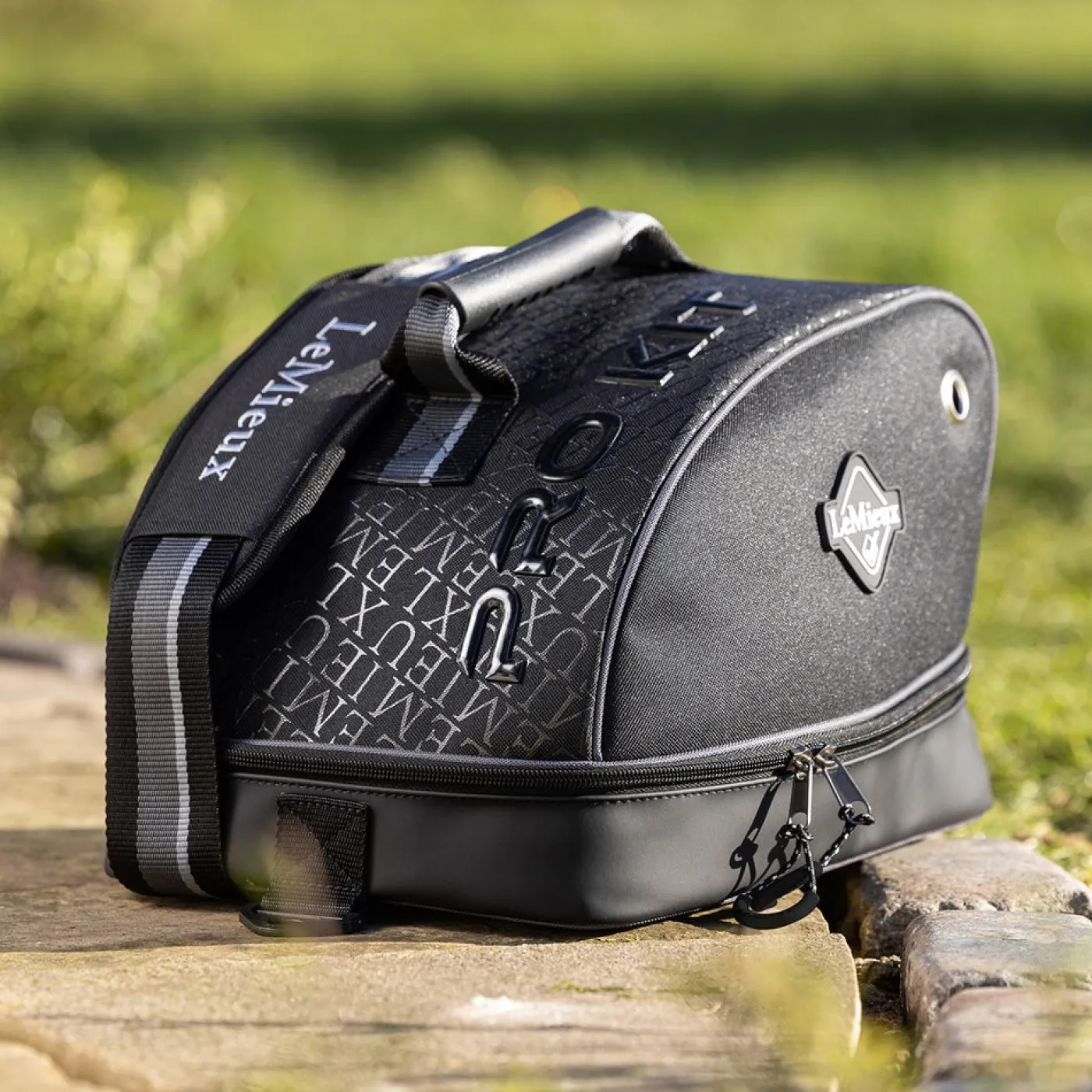 Keep your hat clean and dry in the LeMieux Pro Helmet Bag. With a strong waterproof denier nylon outer, it’ll keep your horse riding essentials safe and secure, whether you’re on the move or storing them at home. The bag features an adjustable long strap and comfort grip handle that gives you a choice on ways to carry. It’s super versatile and designed to be used your way. Complete with a signature metal badge.