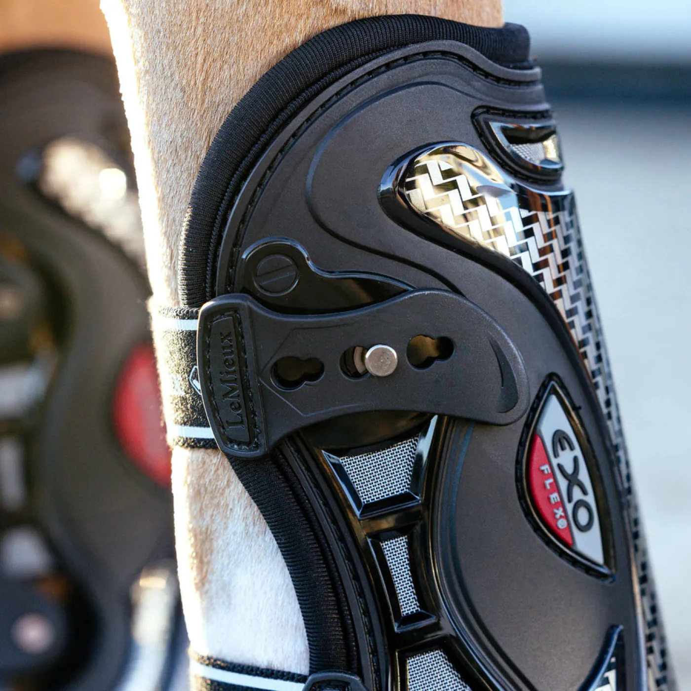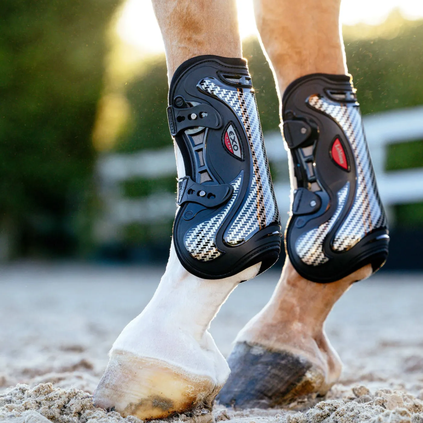 The Lemieux EXO Flex Tendon Boots offer a layer of ACF artificial cartilage foam biometric material to absorb and dissipate up to 90% of impact. Features internal perforated dynamic neoprene contours to support the tendon and fetlock with breathable bamboo lining and outer 3D mesh. Complete with forward facing vents for added circulation, and minimal profile, structure and weight, avoiding unnecessary bulk.