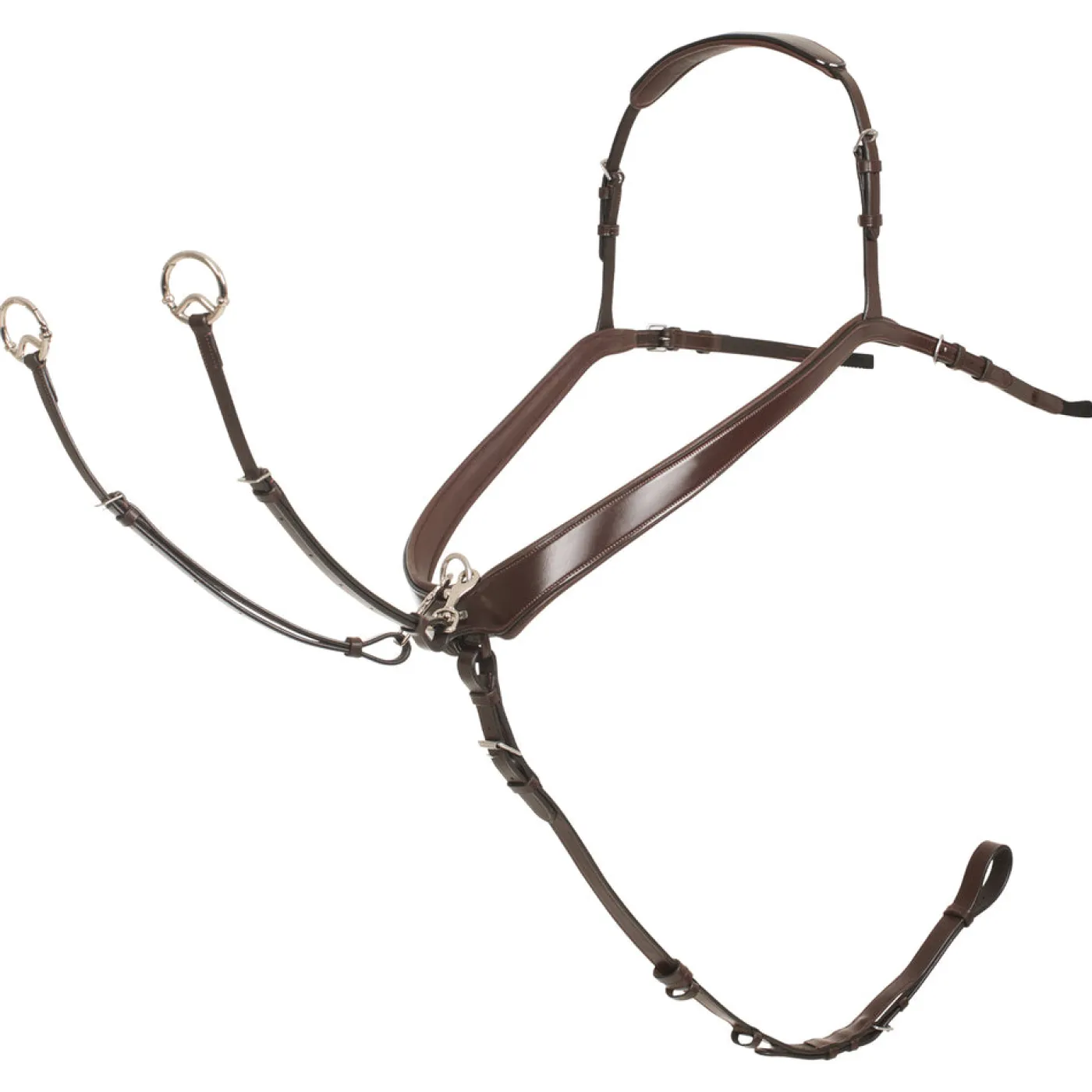 The LeMieux Kudos Bridge Breastplate is a useful accessory designed with complete comfort and functionality in mind. Crafted from soft and supple oiled leather with a bridge strap at the wither. This anatomically swept back bridge breastplate features girth strap attachments which provide ultimate stability, while staying clear of moving shoulders. Padded across the chest and withers, it’s comfortable and well-fitting with multiple adjustment points to ensure even weight distribution. Detachable running martingale rein attachments clip on and off the reins with ease.