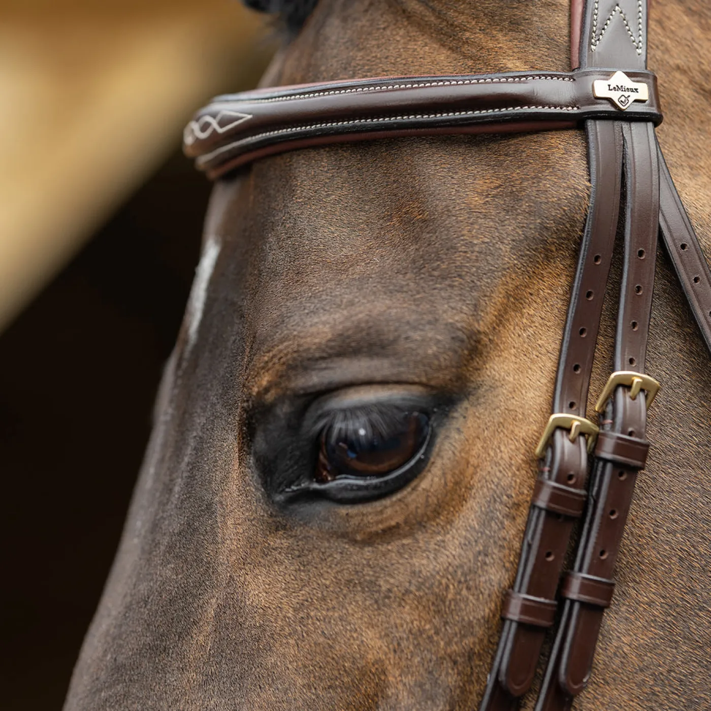 The Lemieux Kudos Competition Flash Bridle offers show quality with an elegant shaped, padded browband and noseband with decorative stitching. The discrete, detachable flash loop sits flush within the noseband and is easy to remove, making this beautiful snaffle bridle suitable for a variety of horses. This picture-perfect bridle is made for comfort by avoiding sensitive pressure points and allowing good blood circulation. Made from beautifully soft European leather and features an anatomically shaped headpiece with a soft and padded cut away around the ears and poll to aid in the distribution of pressure, maximizing comfort. Reins sold separately.