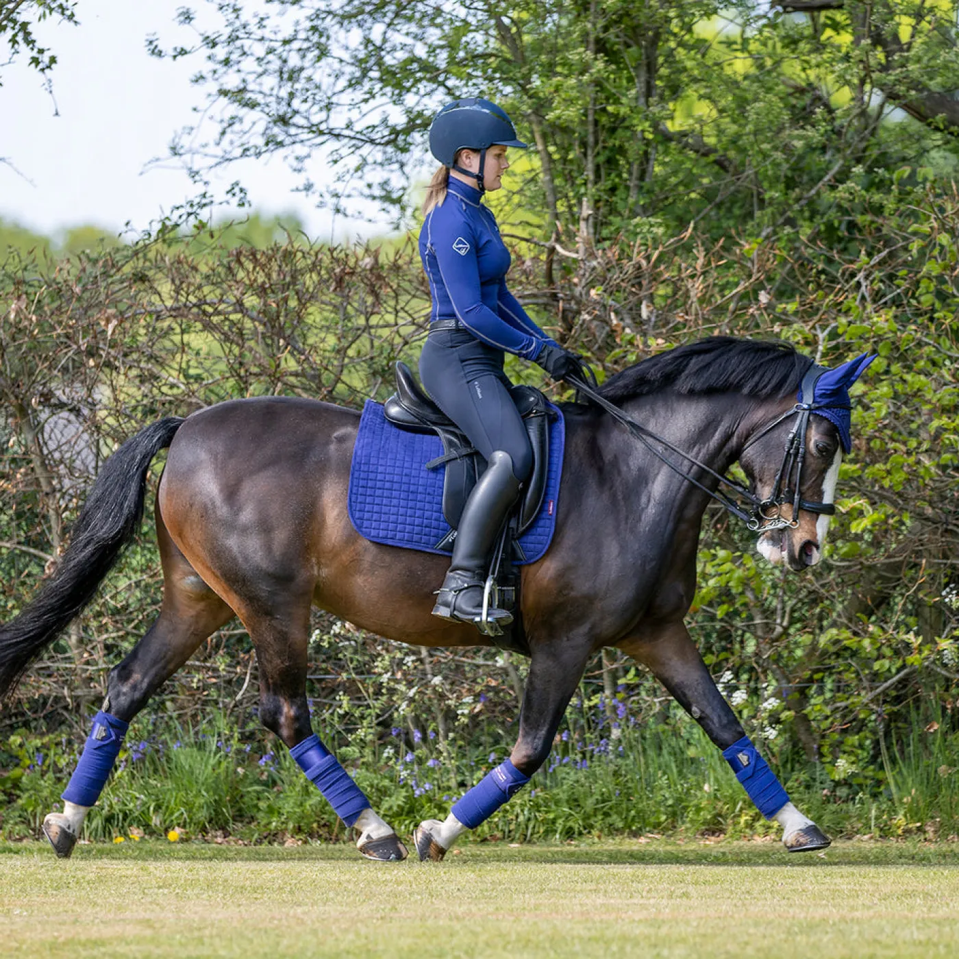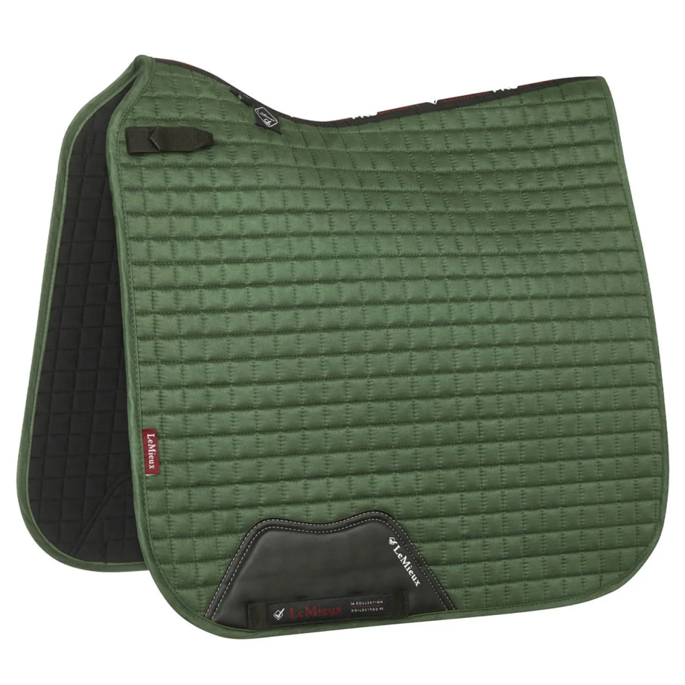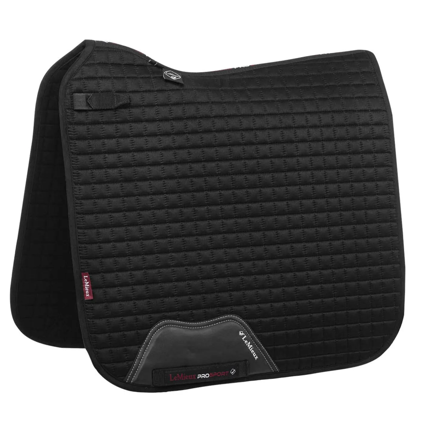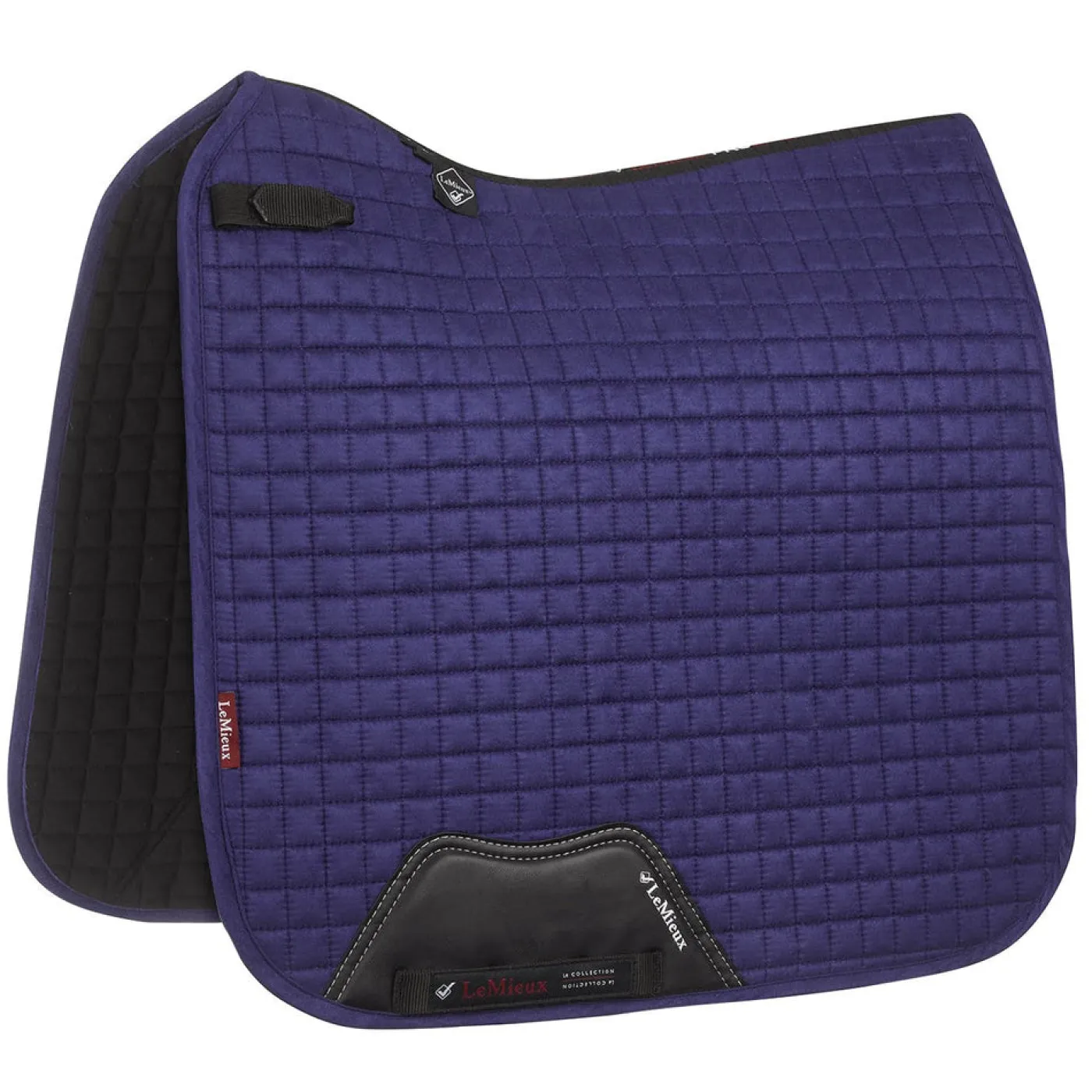 The Lemieux Suede Dressage Pad offers a sleek and professional appearance. Constructed with a suede top and binding, complimented by a super soft Bamboo lining to help absorb and control sweat under the saddle. Features PU leather girth protection with a close contact cut, high wither, and d-ring tabs. Complete with girth keepers incorporated with inner locking loops.