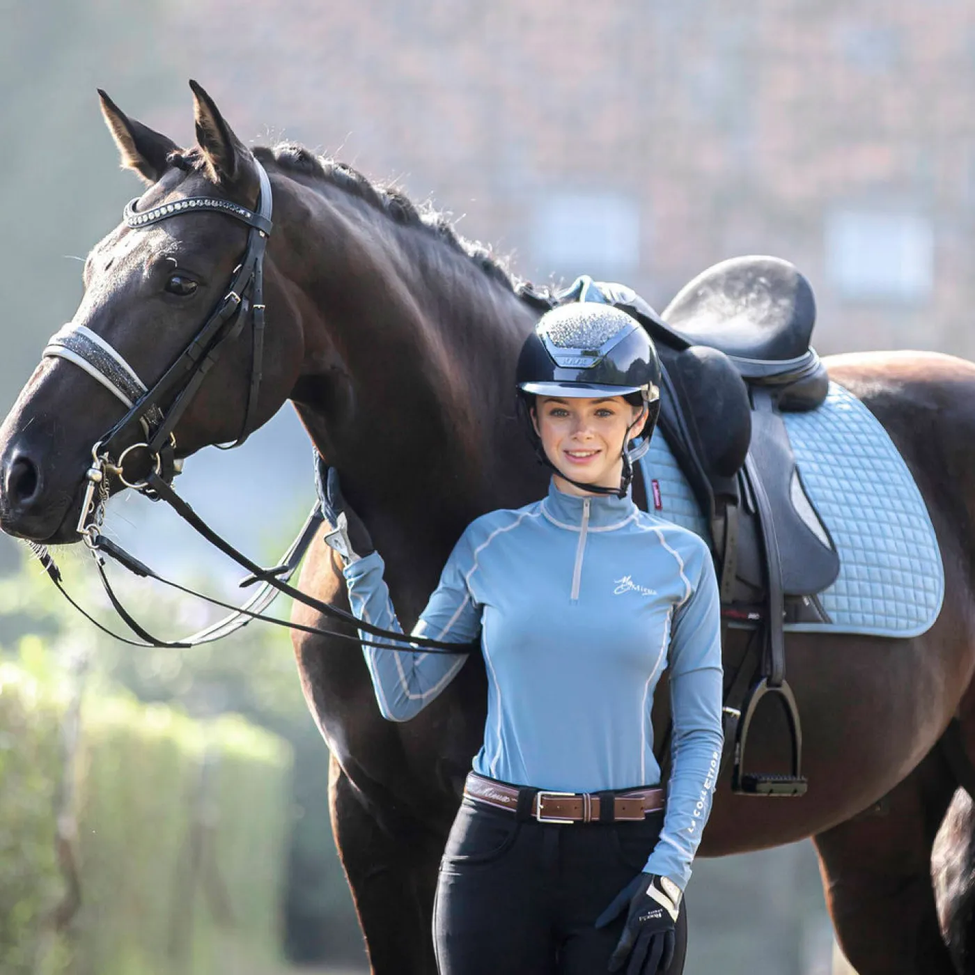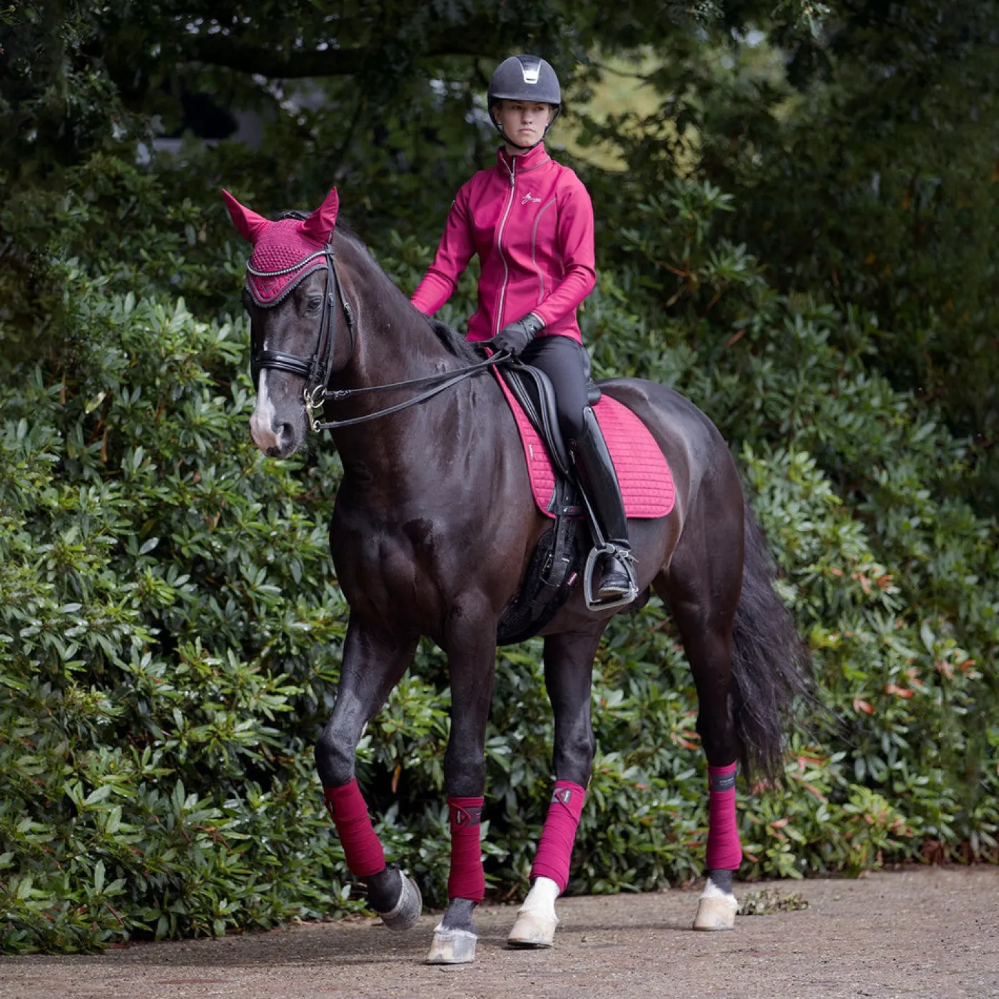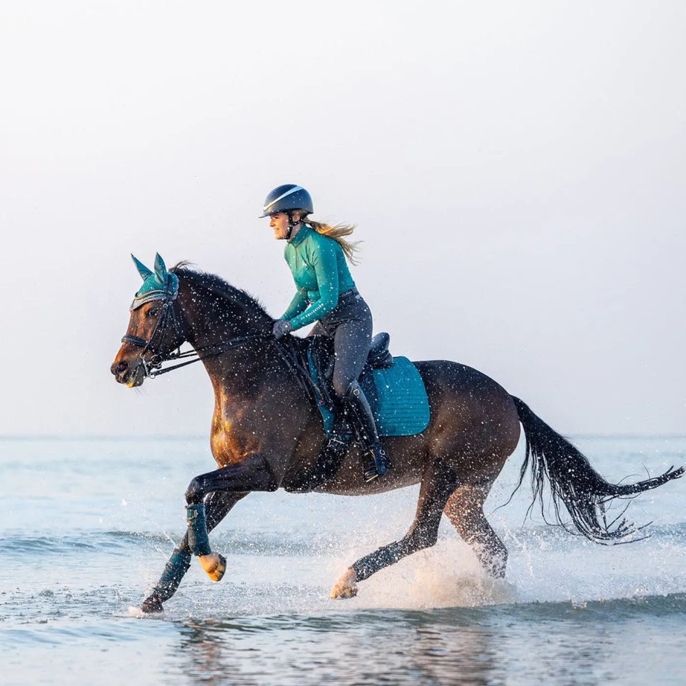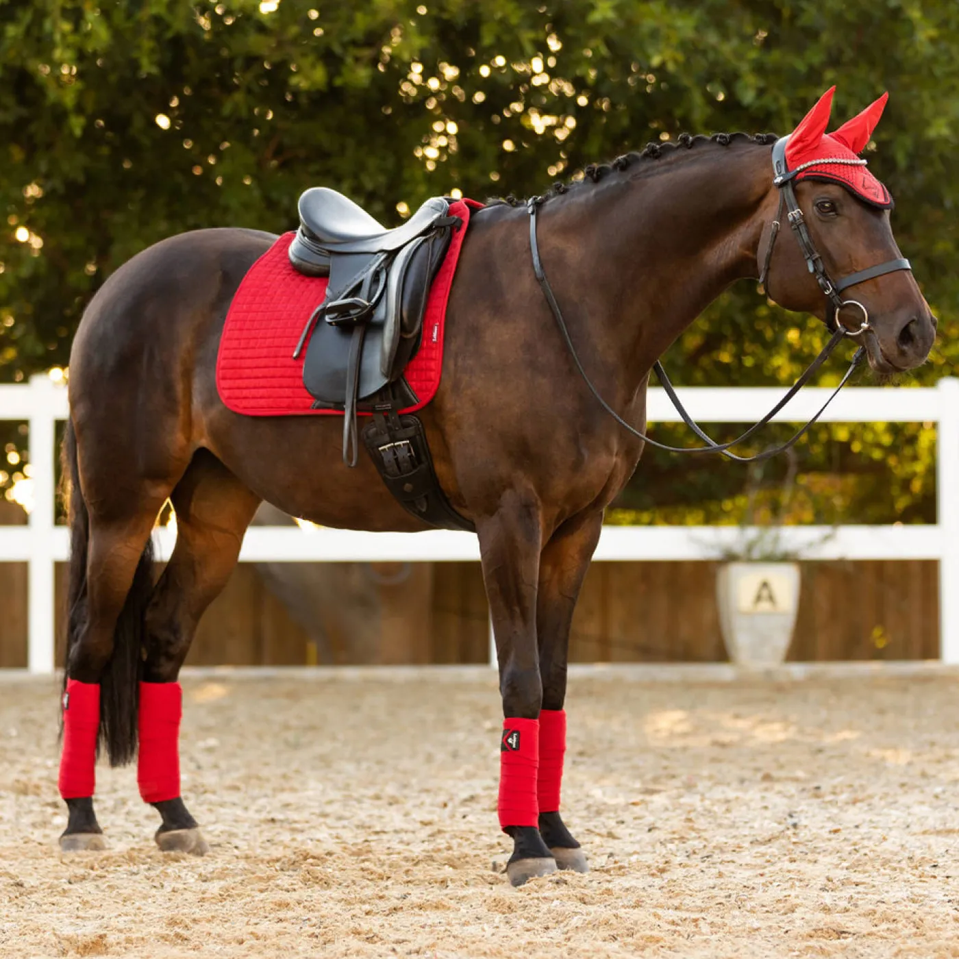 The Lemieux Suede Dressage Pad offers a sleek and professional appearance. Constructed with a suede top and binding, complimented by a super soft Bamboo lining to help absorb and control sweat under the saddle. Features PU leather girth protection with a close contact cut, high wither, and d-ring tabs. Complete with girth keepers incorporated with inner locking loops.