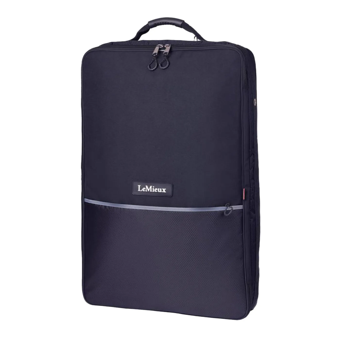 This smart luggage item stores, protects and carries two bridles, with a top hook for easy hanging anywhere. Inside, you’ll find internal hanging clips for two bridles and a padded divider to keep them separated. The double zip opening and mesh air vents ensure air circulation to prevent moisture build-up, which is vital for the care of bridle leather. A durable top carry handle and an elastic hold-back for the front flap make it easy to use, while a generous front zip pocket and multiple internal pockets are handy storage for bits and other small accessories.