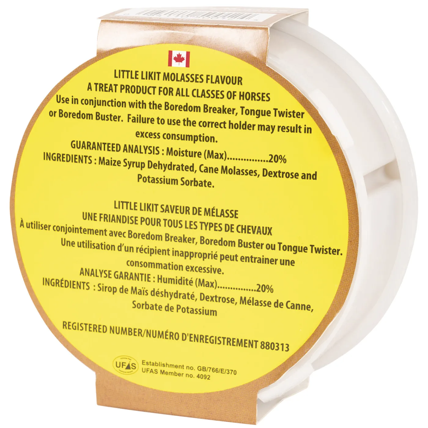 Delicious flavoured treat fits into Likit holders and toys to extend the time your horse spends licking and chewing. Provides entertainment to your horse, enriching the environment in their stall.
