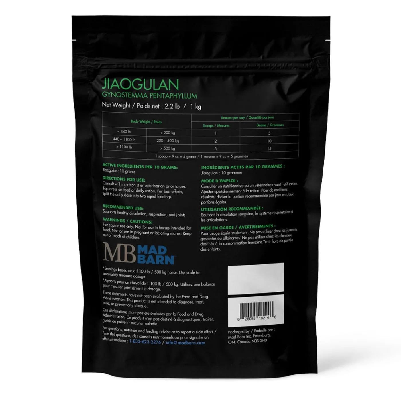 Mad Barn Jiaogulan is an herbal supplement that supports normal circulatory, respiratory, joint, hoof and metabolic health. The Jiaogulan vine has a long history of use in Traditional Chinese Medicine.