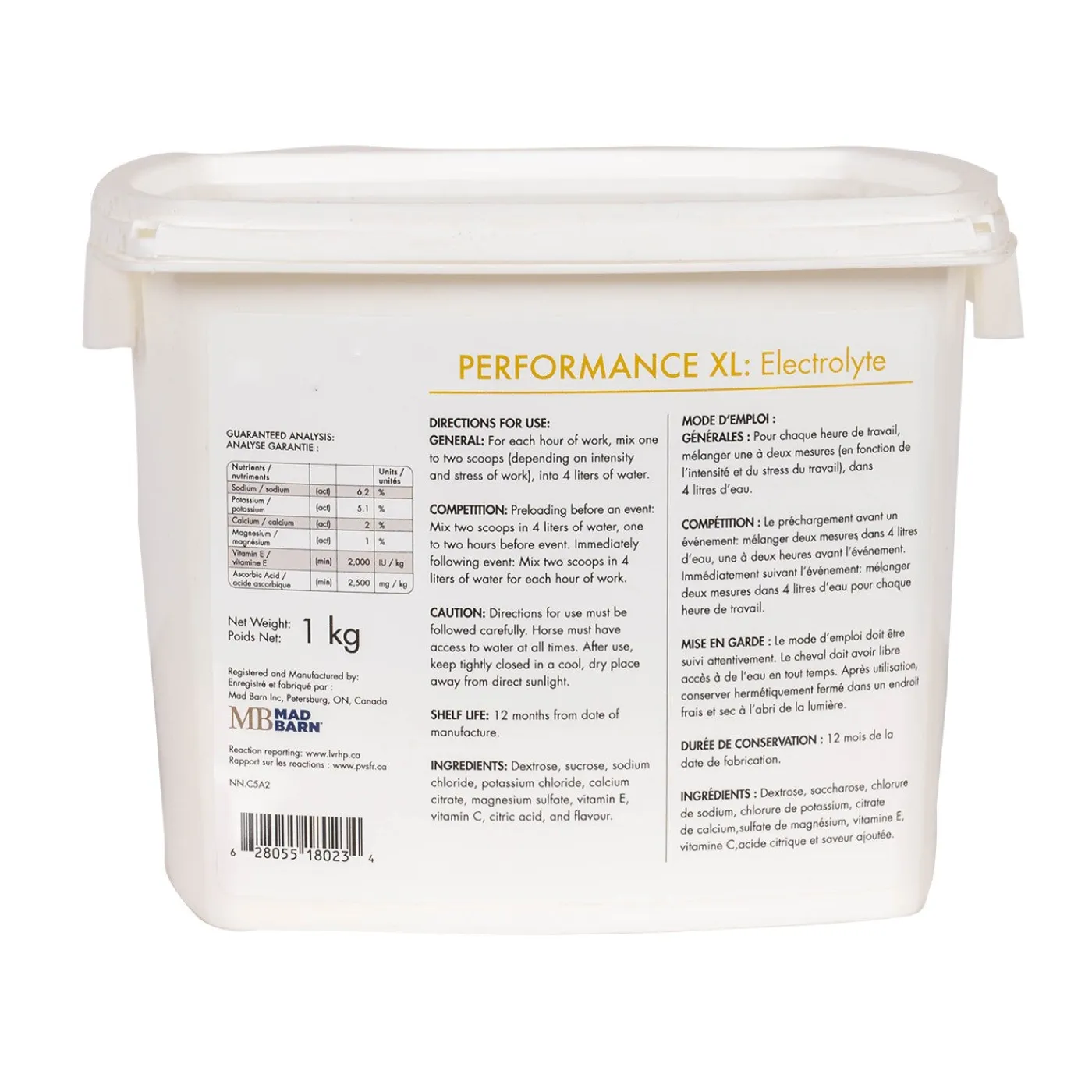 Mad Barn Performance XL Electrolytes help maintain hydration in exercising horses. Performance XL also helps maintain water and electrolyte balance. Approx. 33 servings.