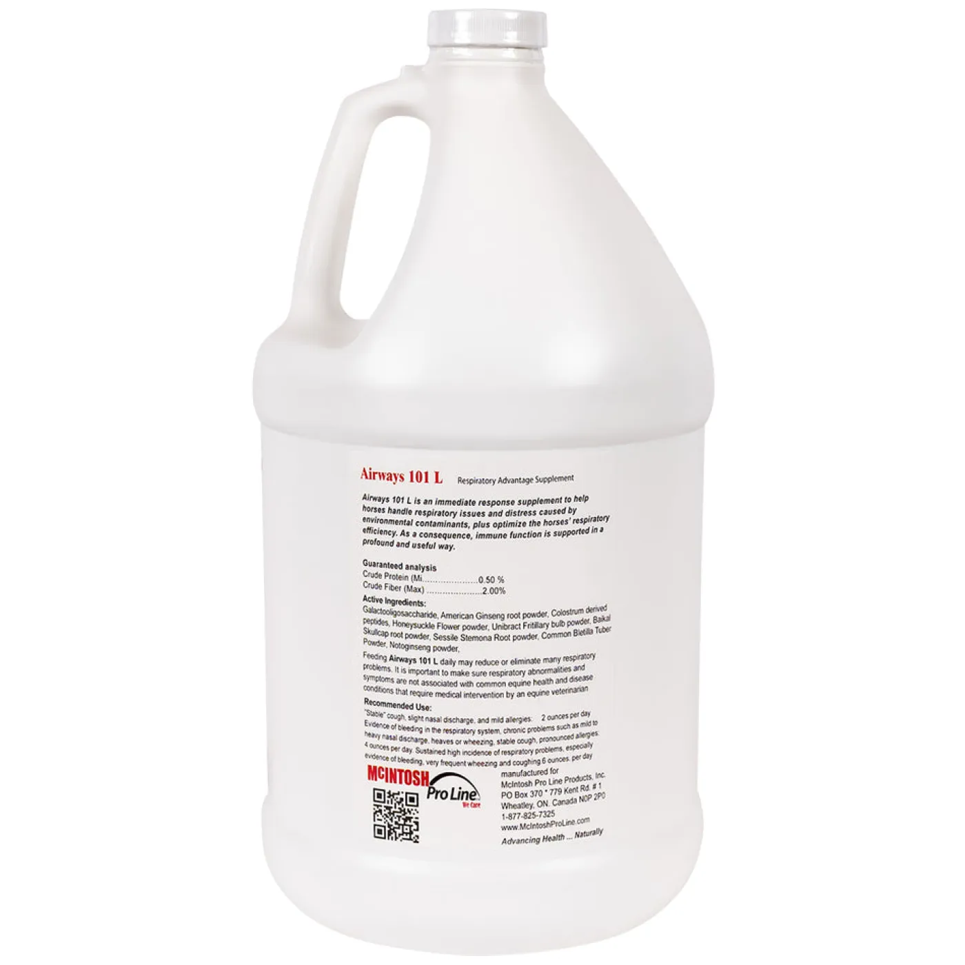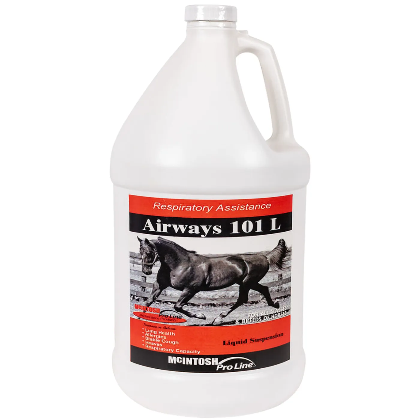 McIntosh Pro Line Airways 101 is a blended combination of herbs found to assist the respiratory tracts. Suitable for horses with respiratory problems or racehorses. 3.78 L.