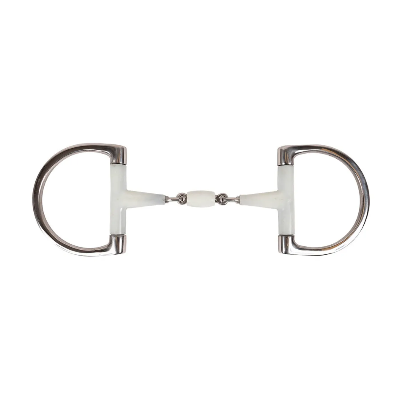 Double-jointed mouthpiece includes a center peanut joint designed to break the nutcracker action of a traditional snaffle bit and help encourage the horse to play with their tongue for enhanced comfort. Crafted in a sturdy hard plastic to offer an alternative to a metal bit and featuring large dee cheek pieces for a traditional look. Complete with a stainless steel core for exceptional durability. Suitable for multiple disciplines.