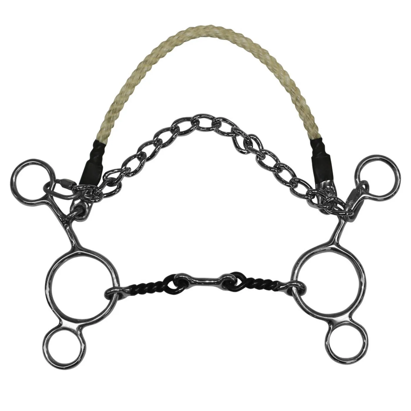 - Double jointed, black snaffle mouthpiece with twisted wire ends