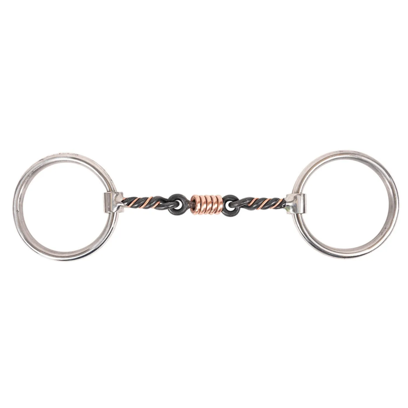 The Metalab Twisted Wire Bit is suitable for horses who have become dull and heavy in the hands and features a copper roller mouthpiece to help prevent the horse from grabbing or leaning on the bit.