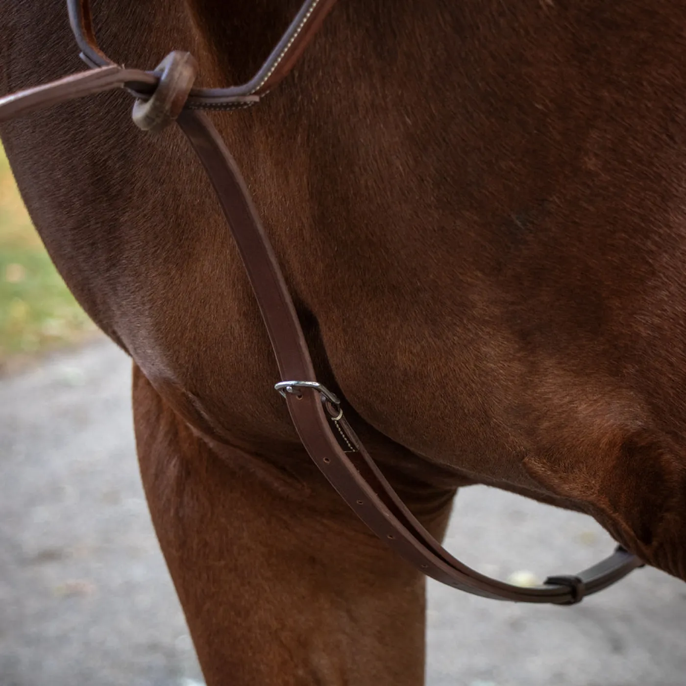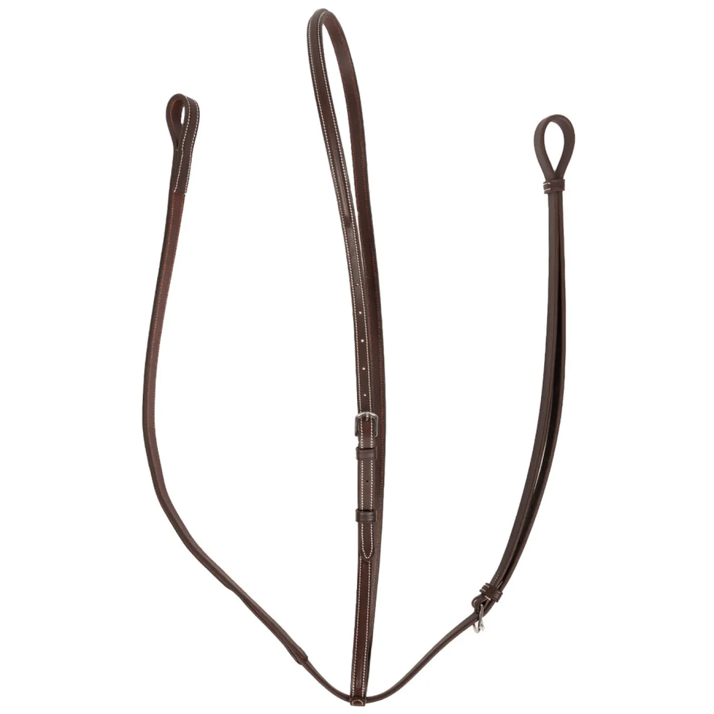 Constructed from French leather with a padded design. The Mondega Carmaux Standing Martingale is beautifully supple and compliments the Mondega Gayo or Bayeux bridles perfectly. Fully adjustable at the neck and girth for the perfect fit. Complete with a fancy stitched design, suitable for the show ring.