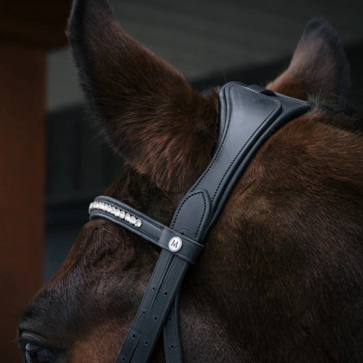 Made from soft and supple French leather with exceptional padding, the Mondega Laval Dressage Bridle offers style and elegance suitable for the competition ring. Features a rhinestone browband with mid-sized jewels inlayed in leather, with a patent leather crank noseband with flash. Complete with contoured cheek pieces to enhance the horse’s head with an ergonomic poll relief crownpiece, suitable for sensitive horses.