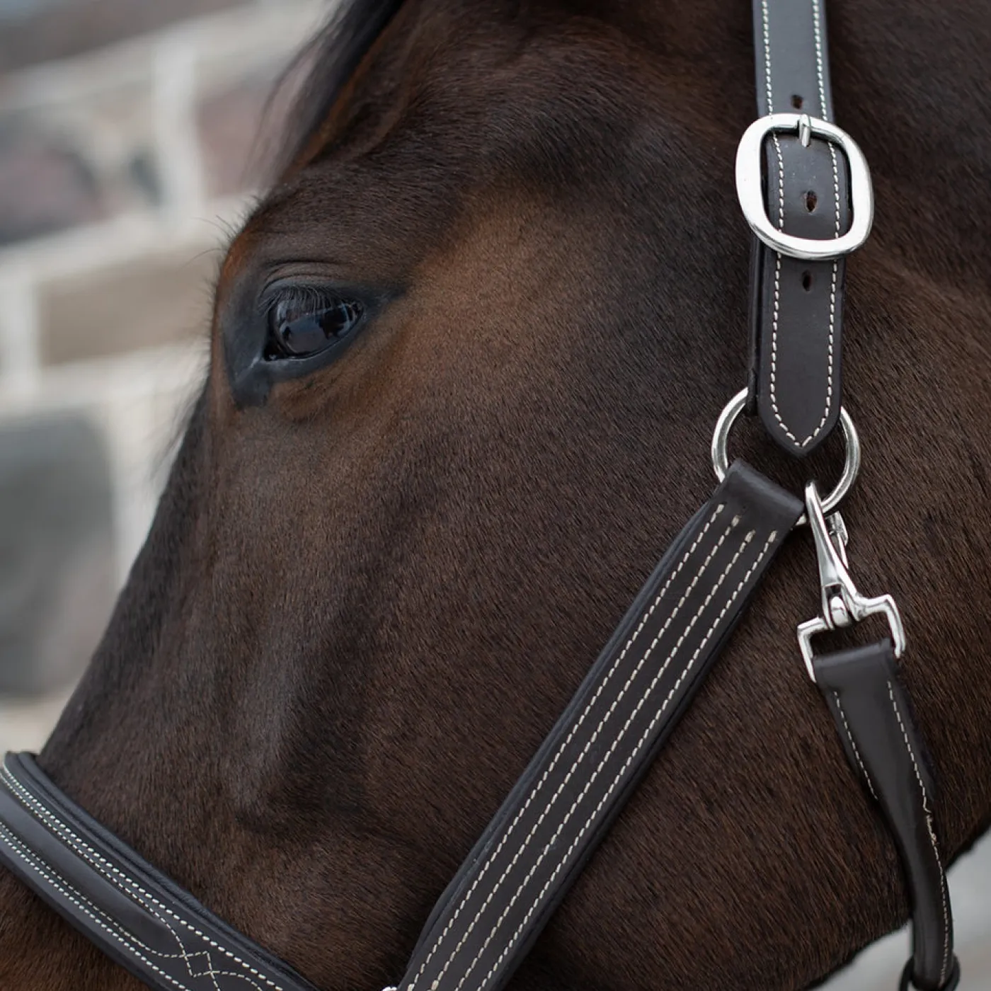 Made from soft Italian leather this beautiful halter is adorned with elegant cream coloured stitching giving a polished look to your horse.