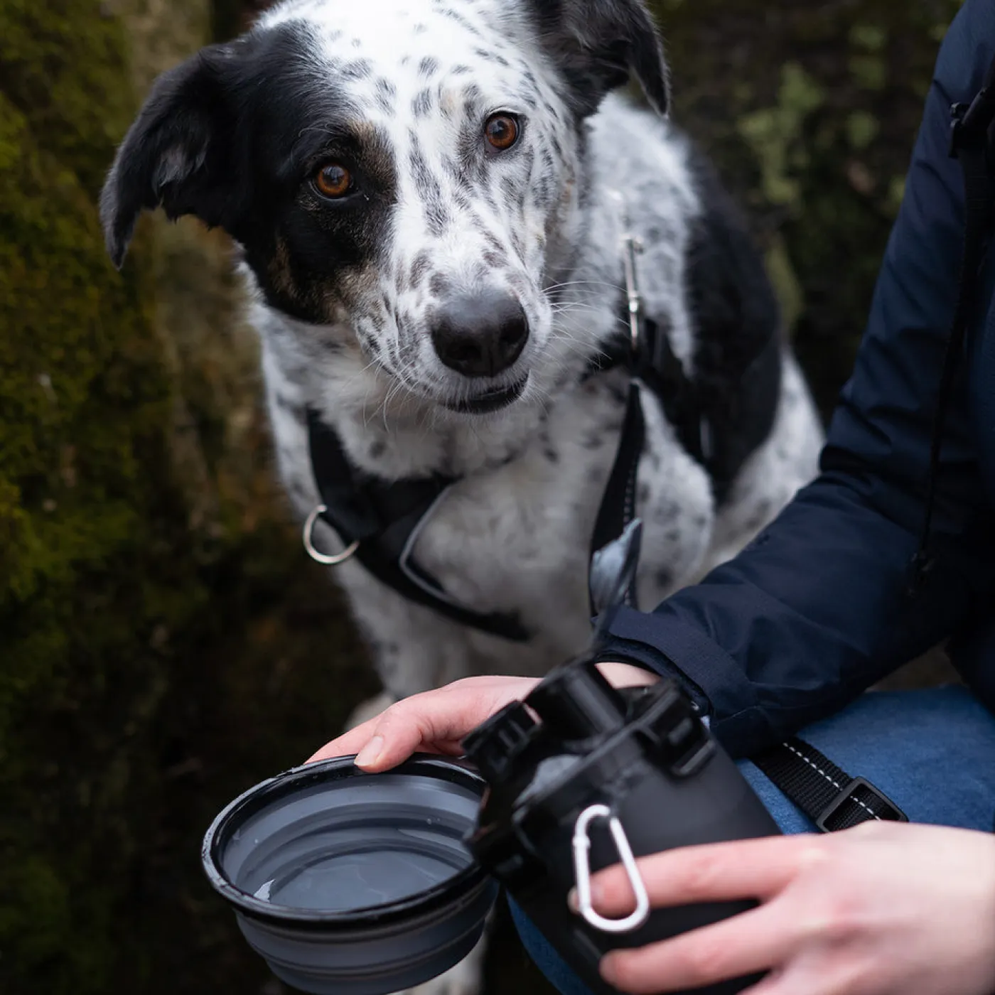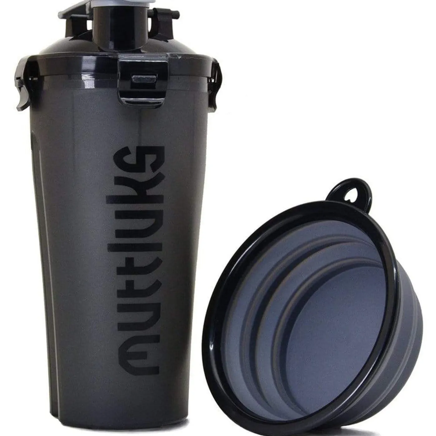 The Muttluks MuTTravel Bottle offers a 2-in-1 food and water bottle for the dog on the go. Features a leakproof lid, and a removable and collapsible bowl. BPA free and dishwasher safe.