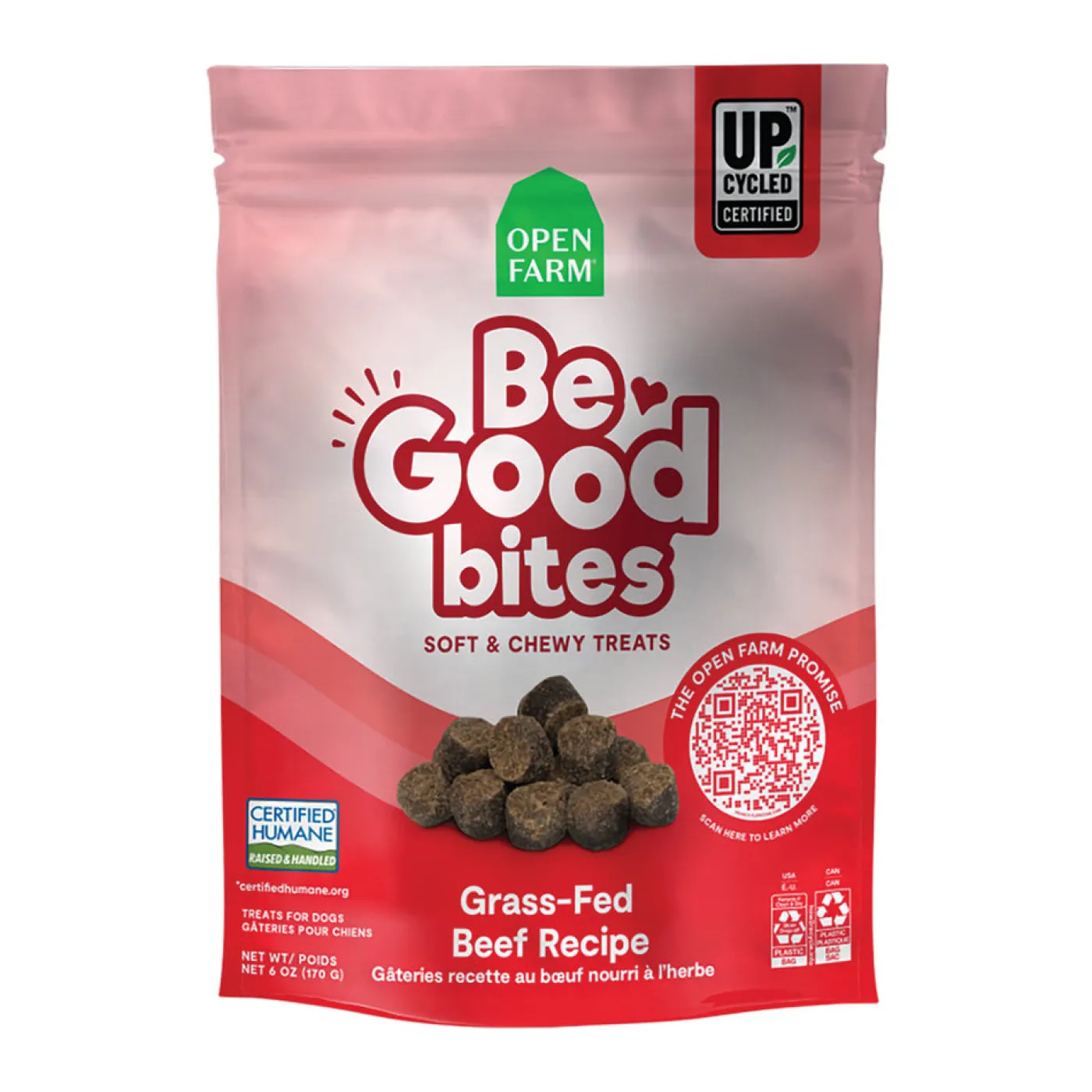 Made with humanely raised grass fed beef as the first ingredient, combined with high-quality non-GMO fruits and grains. These treats included 30% upcycled ingredients, making Be Good Bites great for your pup and the planet too!