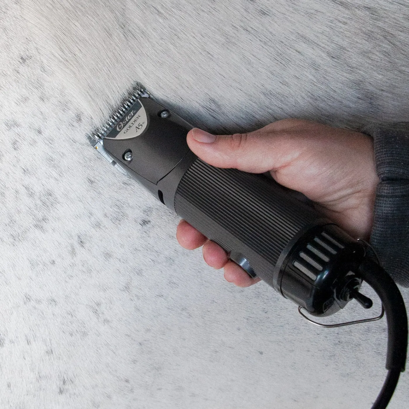 The Oster Golden A5 is a heavy-duty professional corded animal clipper with a powerful universal rotary motor that makes body clipping and winter maintenance a piece of cake. Glides through a thick, coarse winter coats quickly and easily while allowing for precise clipping. Two speed settings allows you to get the job done even quicker: 2100 & 2700 SPM. Detachable and interchangeable blades (sold separately) ensure a customized yet easy-to-execute clip. A must-have for every professional equine and canine groomer. Compatible with Oster detachable blades.