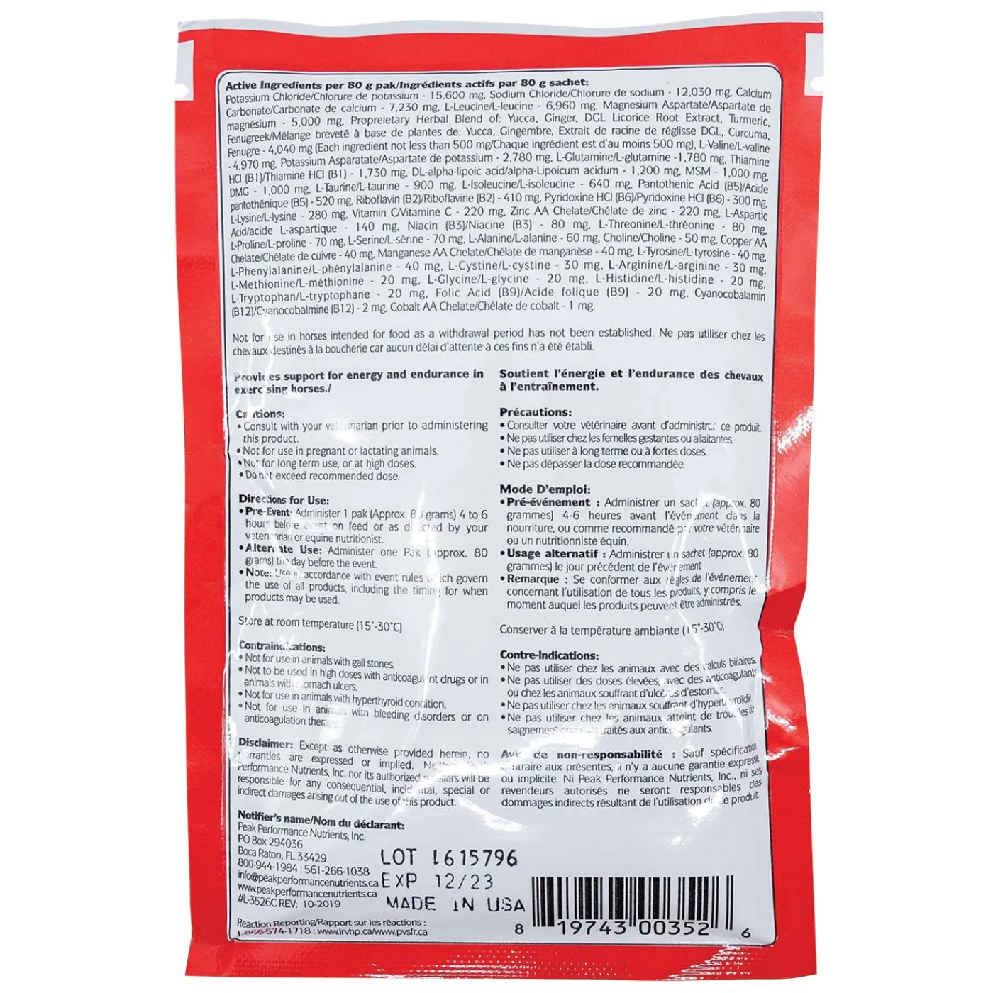 The Peak Performance Blitz! Pak provides support for energy and endurance in exercising horses. Sold in an easy-to-feed single pack. Oral powder. 80gm.