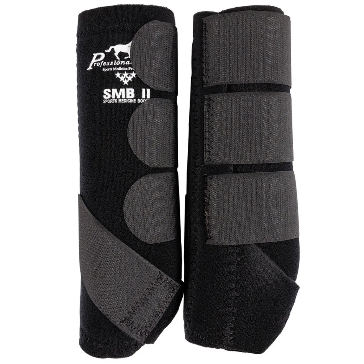 Made from limestone based neoprene with an antimicrobial inner lining, the Professional’s Choice SMB II is designed to absorb a portion of the energy generated from the hoof impacting the ground. Features four fastening tabs for additional security and shields the fetlock for greater coverage.