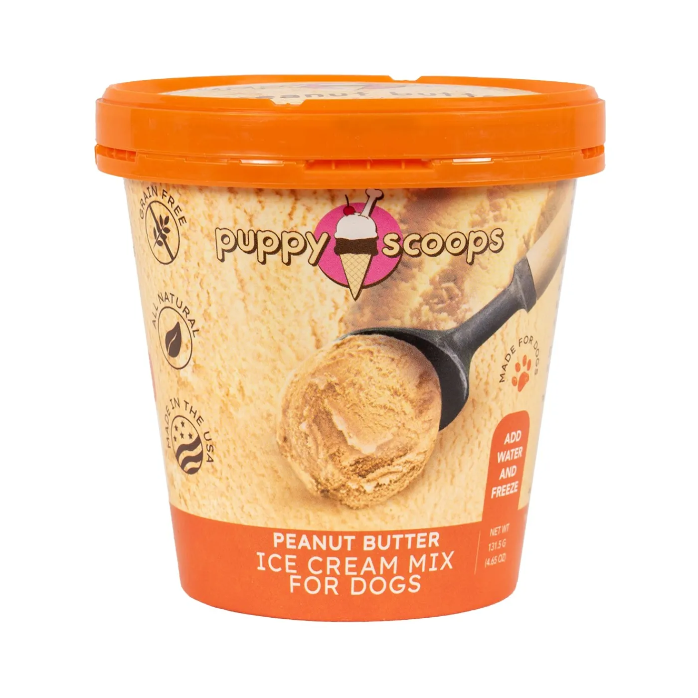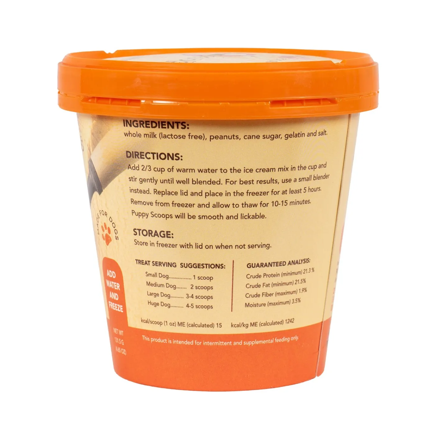 Puppy Cake Hoggin’ Dogs Ice Cream Mix offers a savory, decadent, and delicious treat that your pup will love. Lactose free with no added sugar for a treat you can feel good about. Simply add water, blend, and freeze. Designed with a peanut butter flavour! 131.5 g/4.65 oz.