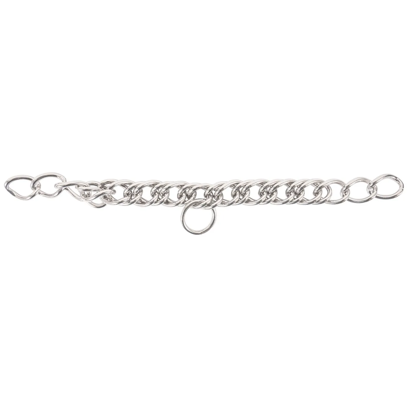 The Shedrow Curb Chain features 24 stainless steel, flat chain links. The Curb Chain may be used with a curb bit and runs under the chin to provide added leverage while helping to keep the bit steady in the mouth. 24 cm L.