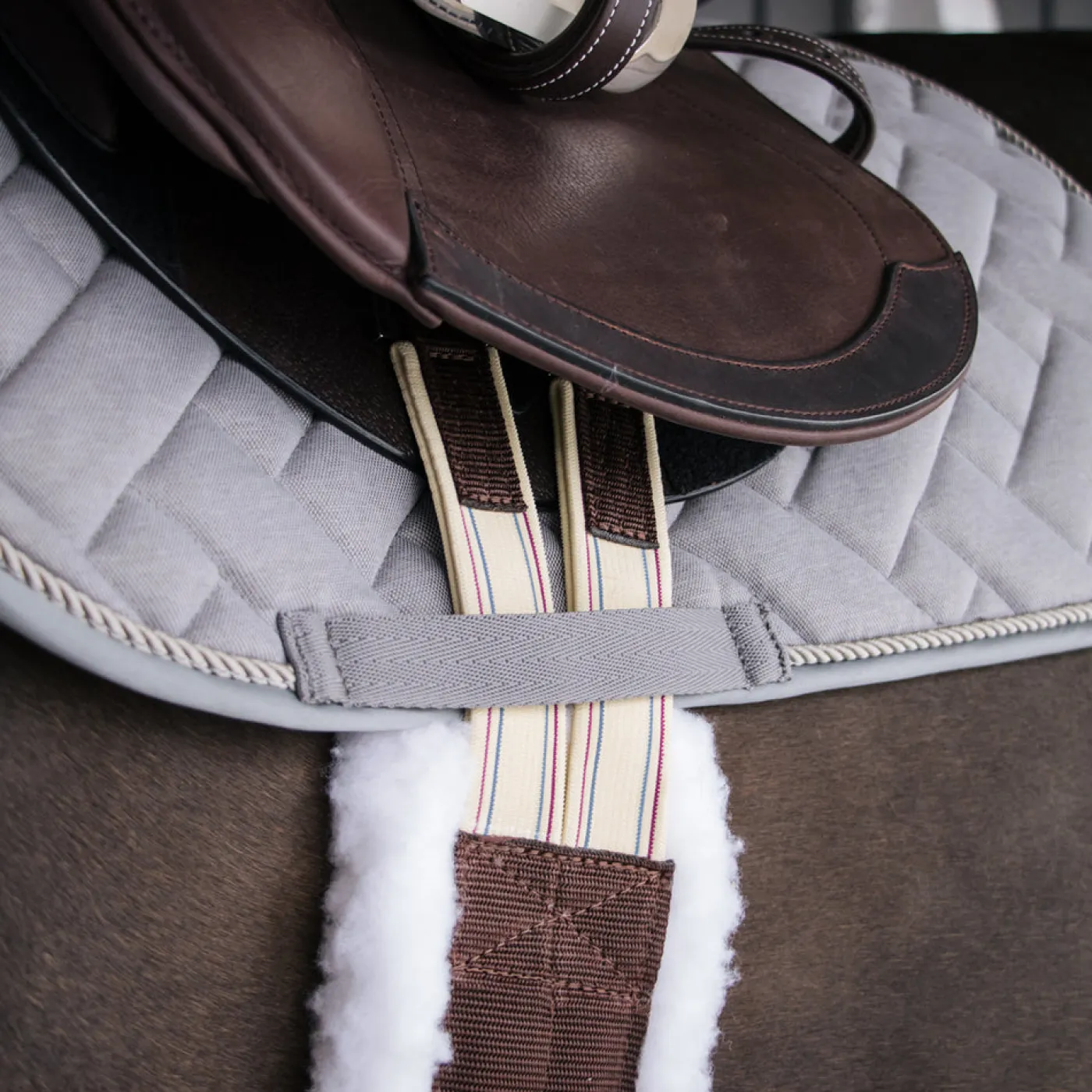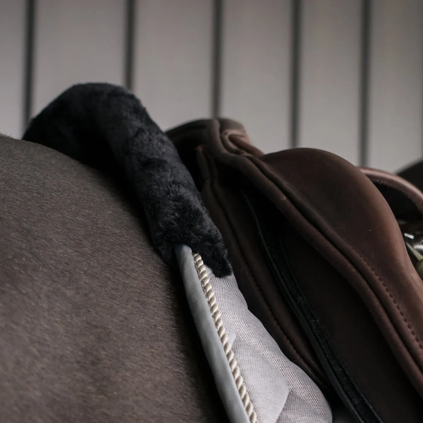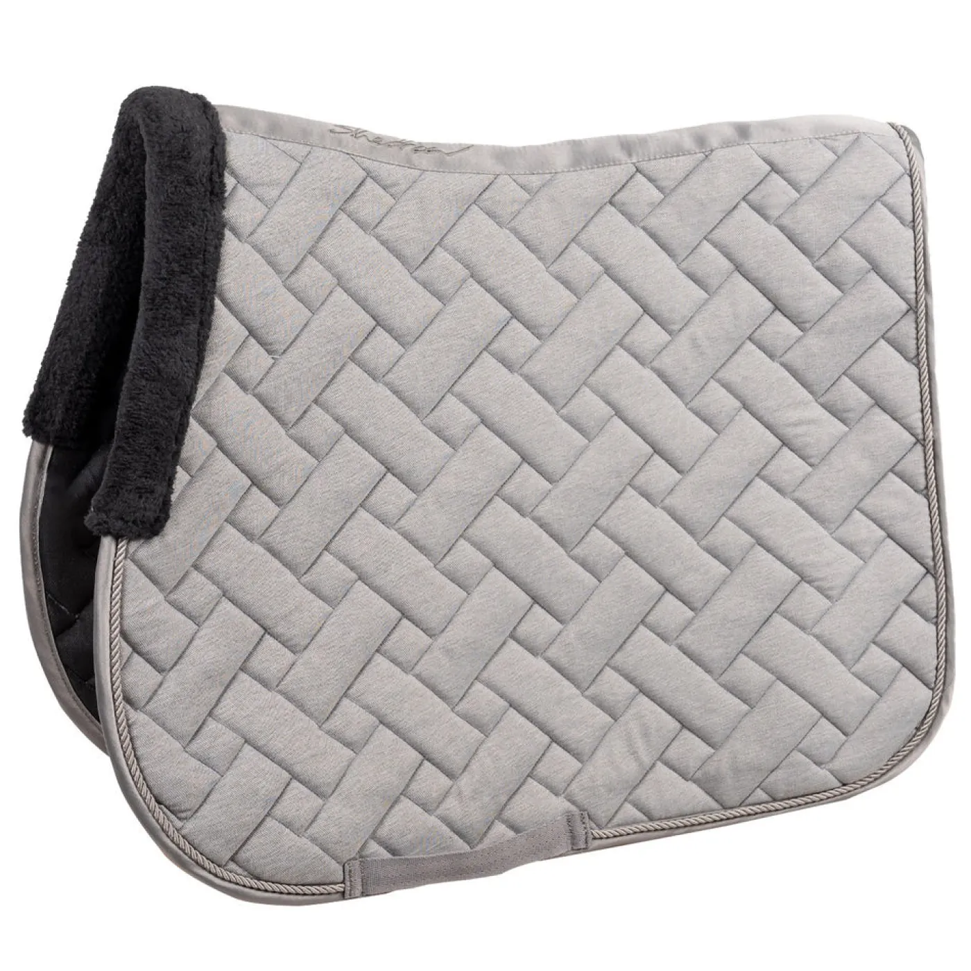 Ride in comfort and style with the Shedrow Icon Saddle Pad. This quality pad features high end finishes for a polished look. Made from double layered foam and felt with a quick dry mesh lining to keep your horse cool and comfortable. Includes girth loops and billet straps. Finished with luxurious faux mink fur padding over the withers. Small square quilting contours to your horse’s natural shape to prevent bunching. 100% Polyester fabric and lining with foam and felt padding. Foam measures 10 mm thick, felt measures 5 mm thick.