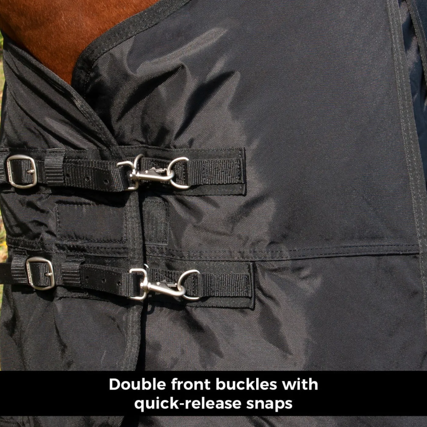 Our most versatile three season favorite, and one of our all-time best sellers! The Shedrow Insulated Rainsheet’s shell is waterproof and breathable and features the latest in weatherproofing technologies. Featuring a tough 840D outer layer with a 200 g kersey lining that is comparable to approx. 100 g of traditional polyfill; making this rainsheet perfect for in-between rain and turnout season. Shoulder gussets enhance freedom of movement during play while a reinforced tail cover provides coverage from the elements and rubbing. Complete with cross-biased surcingles, stretchy back leg straps, and doubled nylon front straps with sturdy buckles.