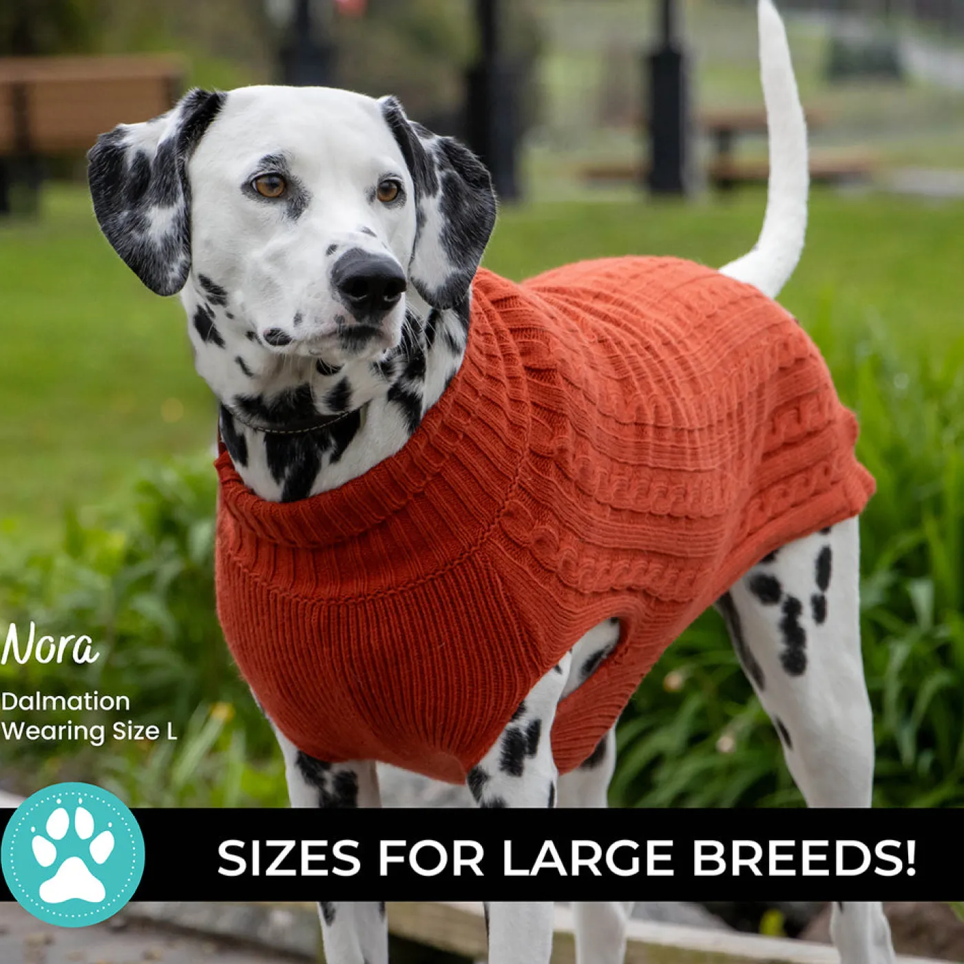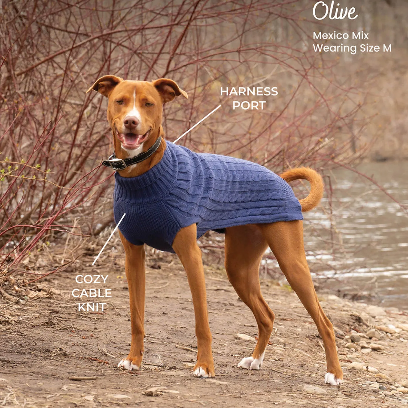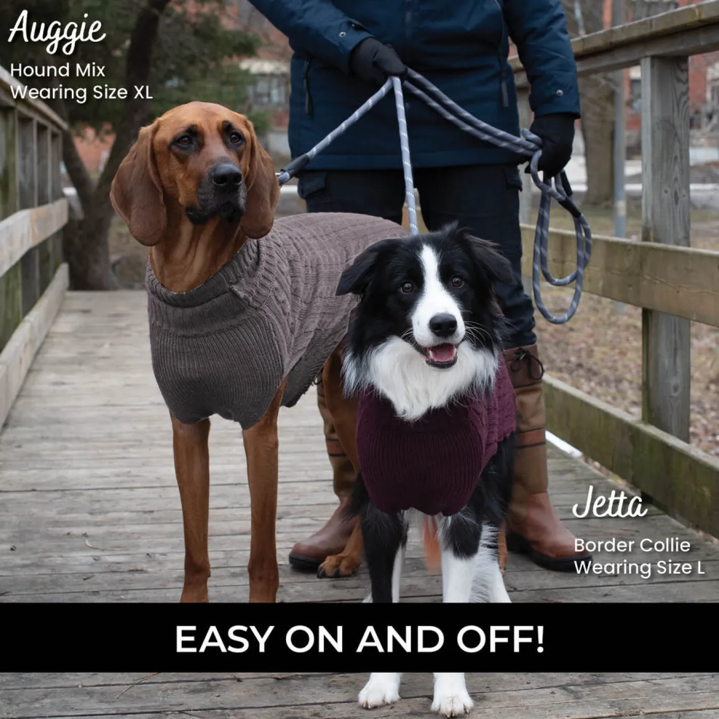 Perfect for adding a layer of extra warmth on a chilly day, the Shedrow K9 Brentwood Cable Knit Sweater easily transitions between relaxing indoors and exciting outdoor adventures. Traditionally styled in a cozy cable knit and featuring stretchy leg openings and hem for a snug fit and optimal comfort. Now in additional sizes for larger dogs!