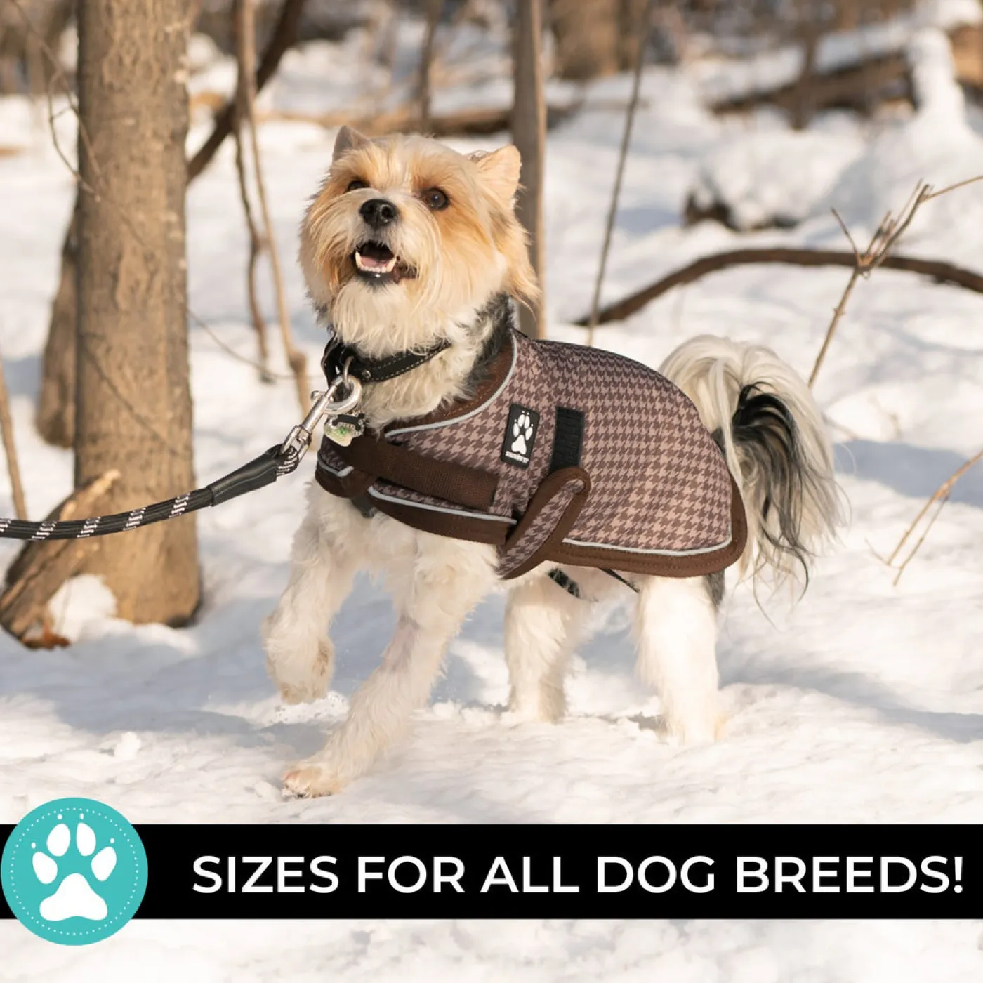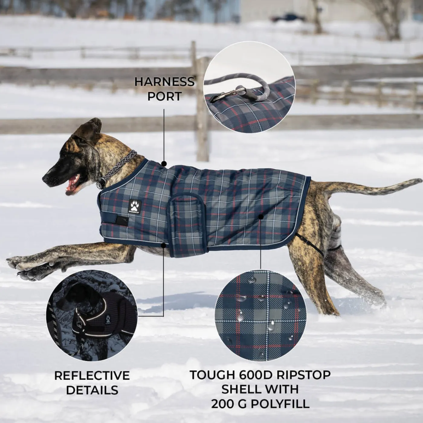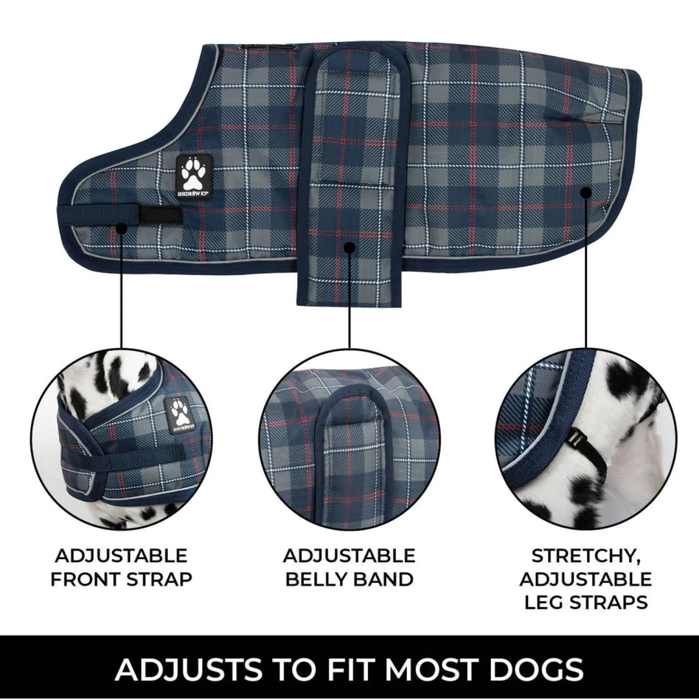Durable, warm, and adorable, the Expedition dog coat features a wind- and water resistant 600 denier ripstop outer shell with a 200 gram polyfill, making it perfect for winter playtime. Adjustable Velcro front strap, wide adjustable Velcro belly band, and stretchy, adjustable leg straps at the back offer a customizable fit for your pup. Complete with a convenient harness port.