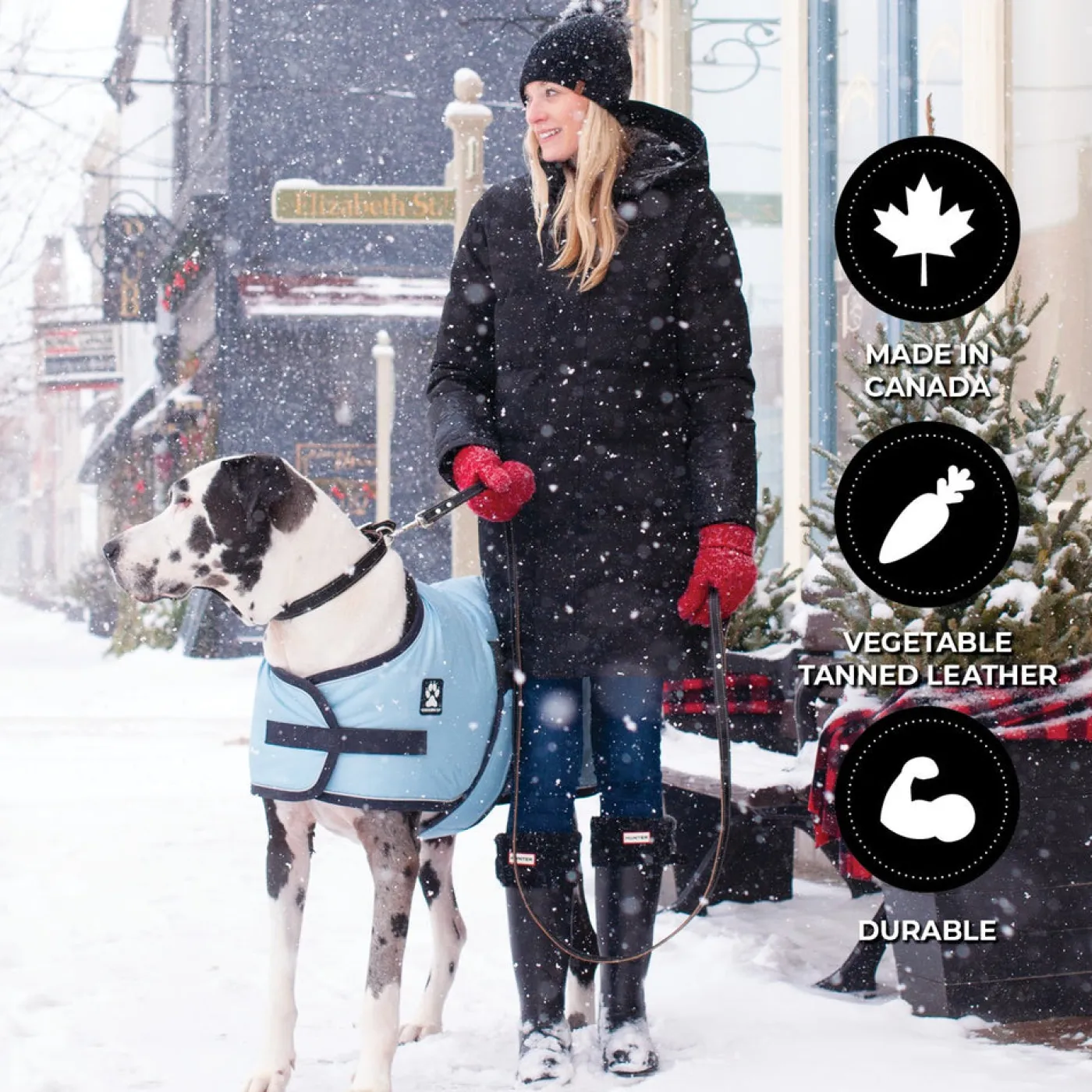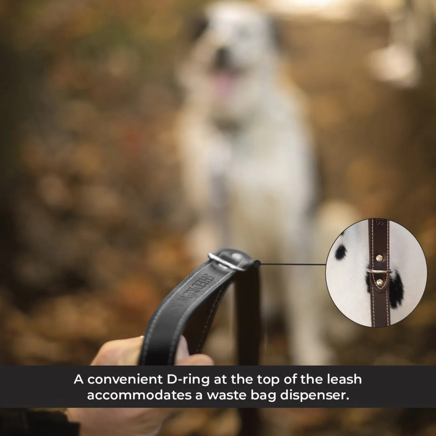 Carefully crafted in Canada using super soft vegetable tanned leather, making it non-toxic and eco-friendly. The deep, rich colouring complemented by white topstitching offers a classic, timeless look. Finished with silver-coloured hardware, including a D-ring at the top of the leash to accommodate a waste bag dispenser. 5’.