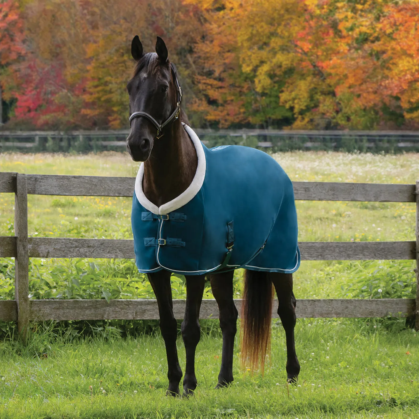 Beautiful brushed polyester cooler featuring a unique Mink fleece collar helps to quickly wick moisture away from your horse’s coat in style! Double buckle front closure, detachable cross-biased surcingles and a tail string enhance the versatility of this cozy and adorable cooler.
